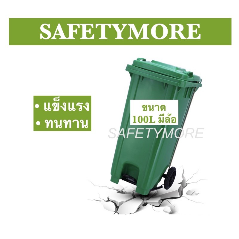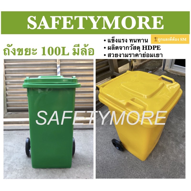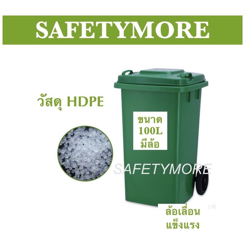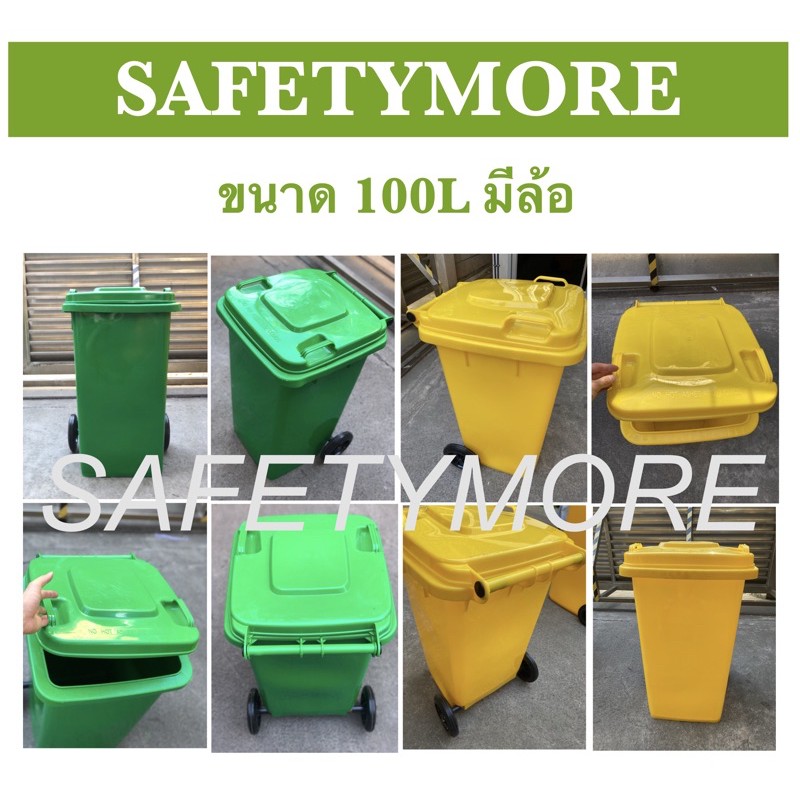 ถังขยะ ถังพลาสติก 100ลิตร มีล้อ HDPE ฝาเปิด สีเขียว เหลือง น้ำเงิน แดง คุณภาพดี ทนทาน สวยงาม