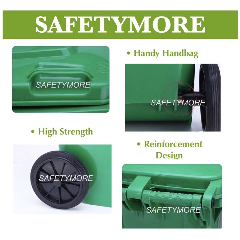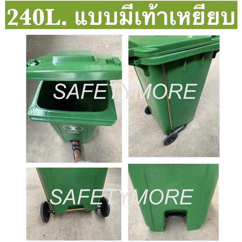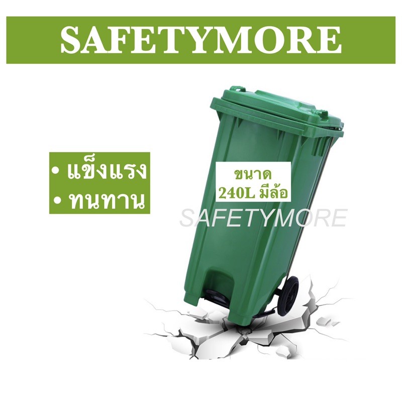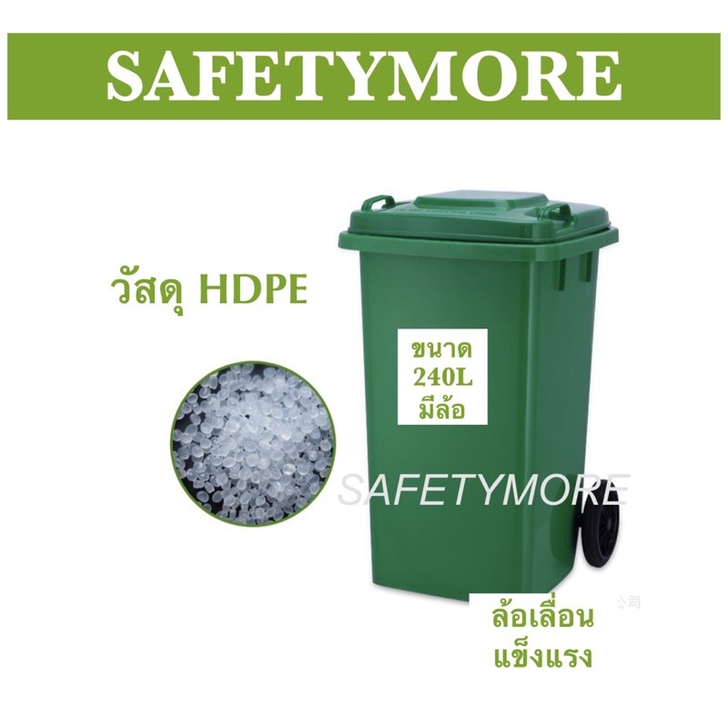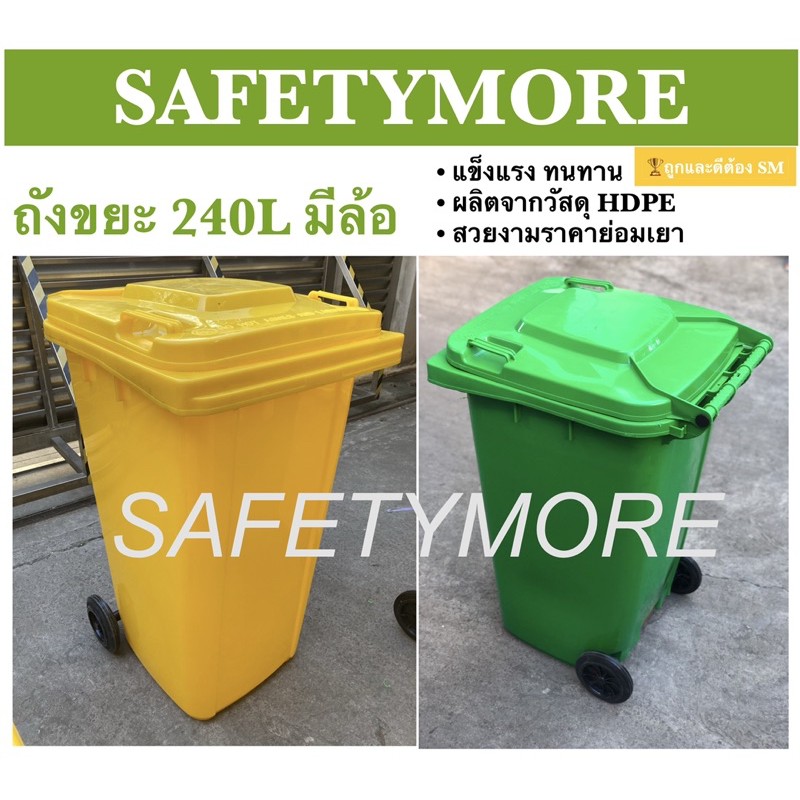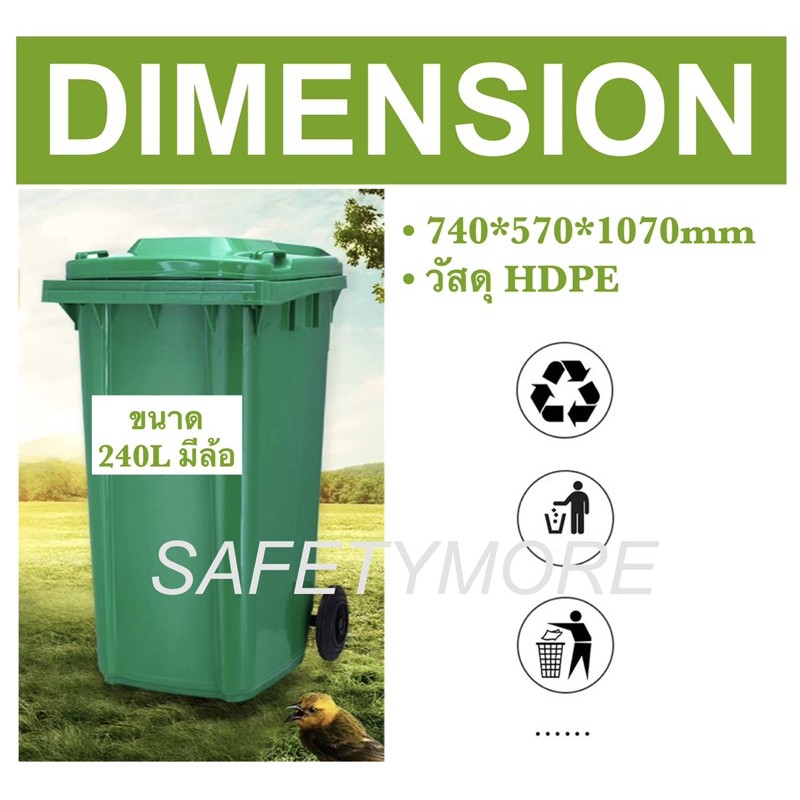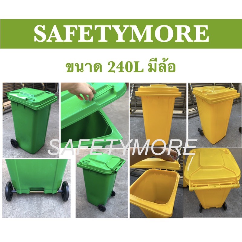 ถังขยะ ถังขยะกทม 240ลิตร มีล้อ HDPE ฝาเปิด ถังพลาสติก สีเขียว เหลือง น้ำเงิน แดง ทนทาน สวยงาม