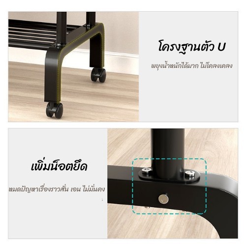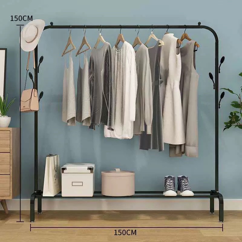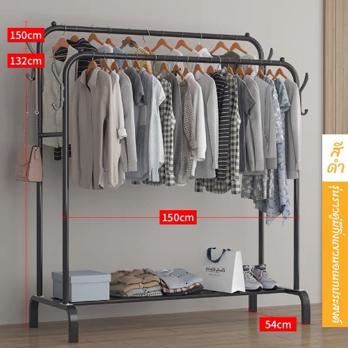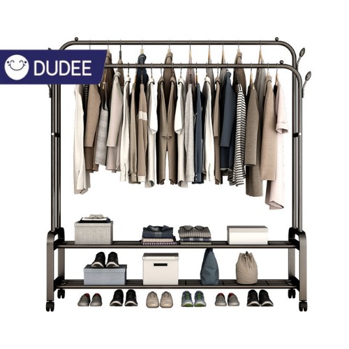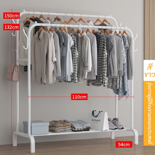 DUDEE ราวเเขวนเสื้อผ้า ราวตากผ้าเหล็ก+ ชั้นวางของ ชั้นวางรองเท้า + ตะขอแขวนเสื้อและแขวนหมวก