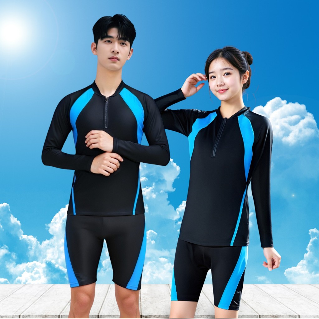 ชุดว่ายน้ำแขนยาวขาสั้นกันแดด ไซส์ใหญ่ ใส่ได้ทั้งชาย - หญิง