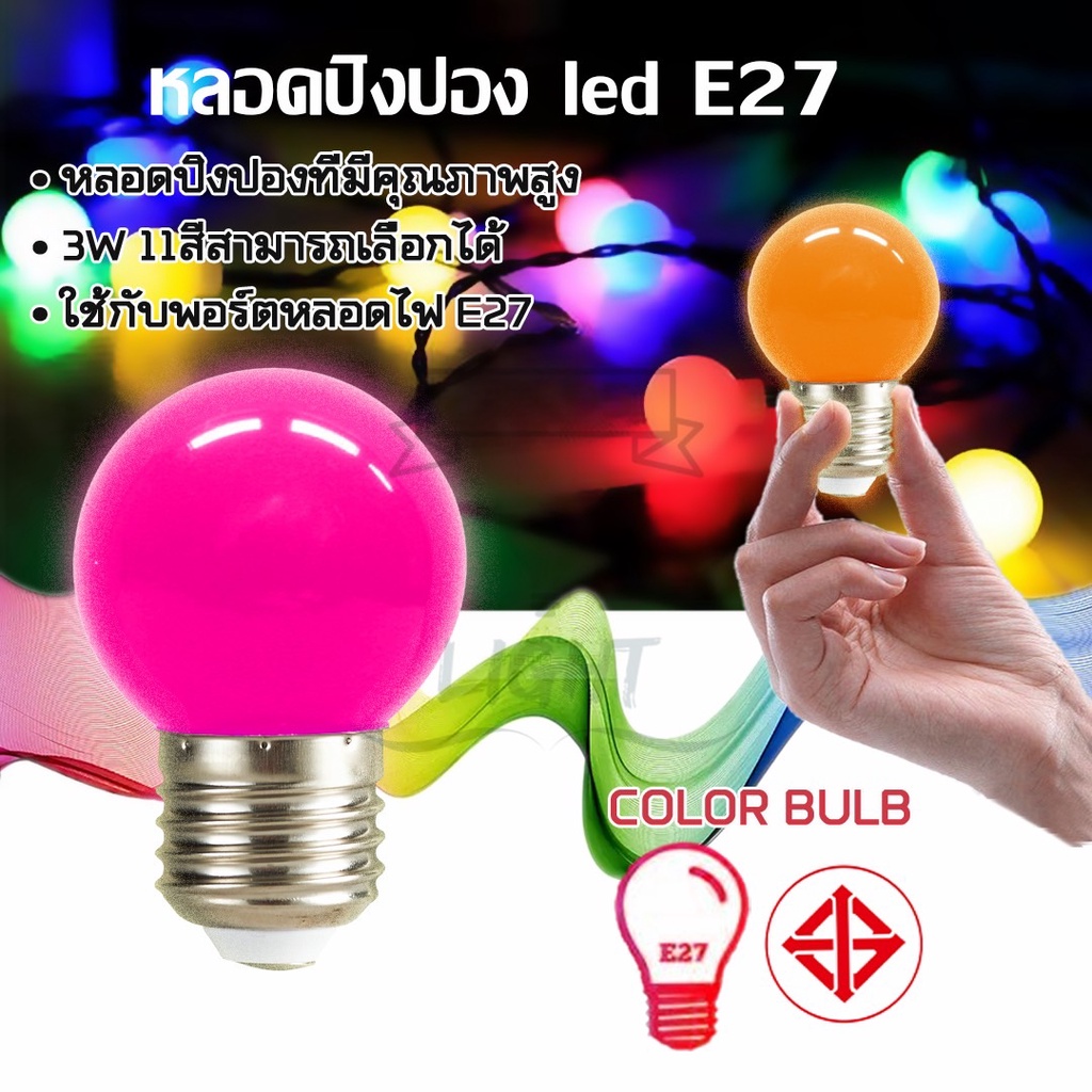 หลอดปิงปอง หลอดไฟสี LED หลอดไฟประดับหลากสี งานเทศกาล คริสต์มาส ปีใหม่ แต่งบ้าน ไฟอีเวนต์3W ขั้ว E27 PVC ตกไม่แตก MR-3W