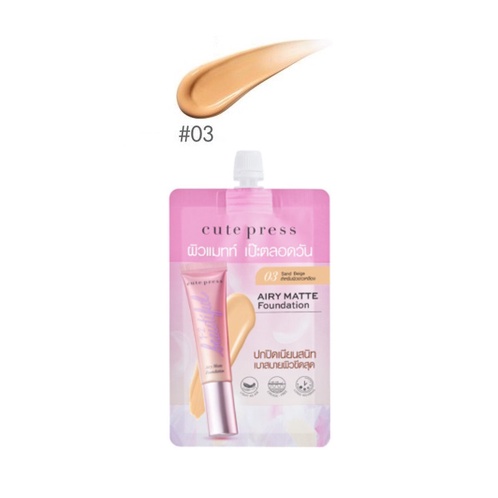 ส่งด่วน/ของแท้/ราคาถูก รองพื้นซอง CUTE PRESS 1-2 Beautiful Airy Matte Foundation 5g