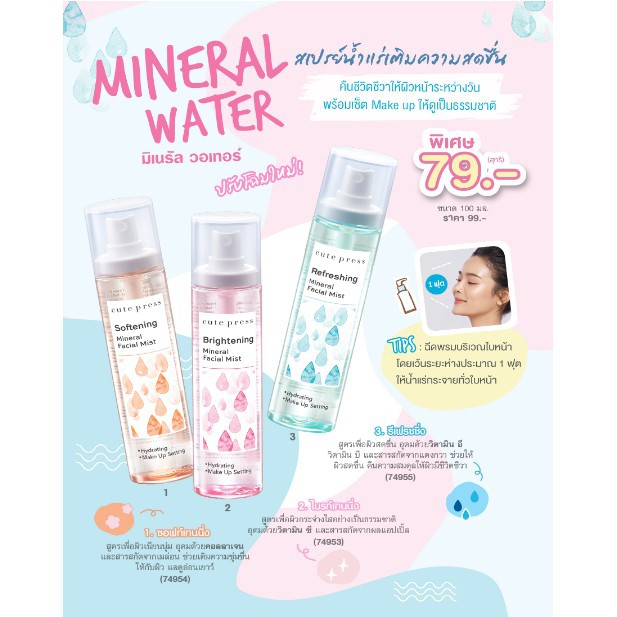 ส่งด่วน/ของแท้/ราคาถูก น้ำแร่คิวเพรส สเปรย์ บำรุงผิวหน้า คิวท์เพรส CUTE PRESS MINERAL FACIAL MIST 100ml.