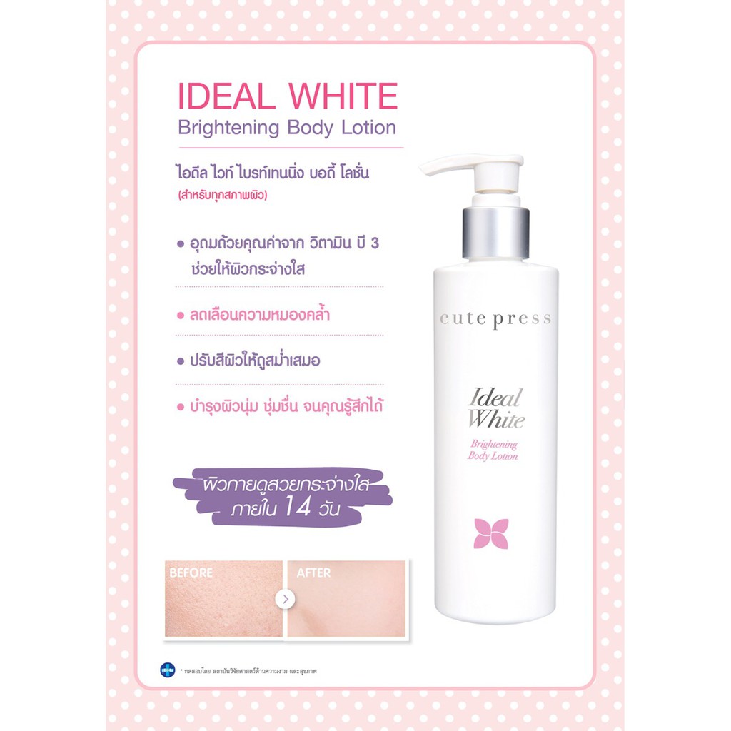 ส่งด่วน/ของแท้/ราคาถูก โลชั่นหัวปั้ม Cute Press คิวเพรส ไอดีล ไวท์ ไบร์ทเทนนิ่ง บอดี้ โลชั่น 220 มล.