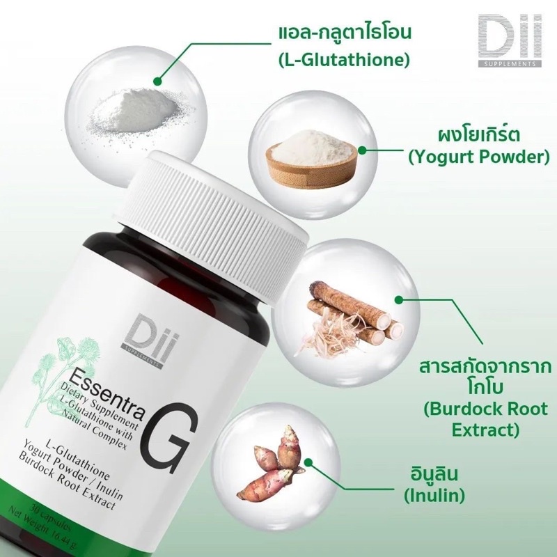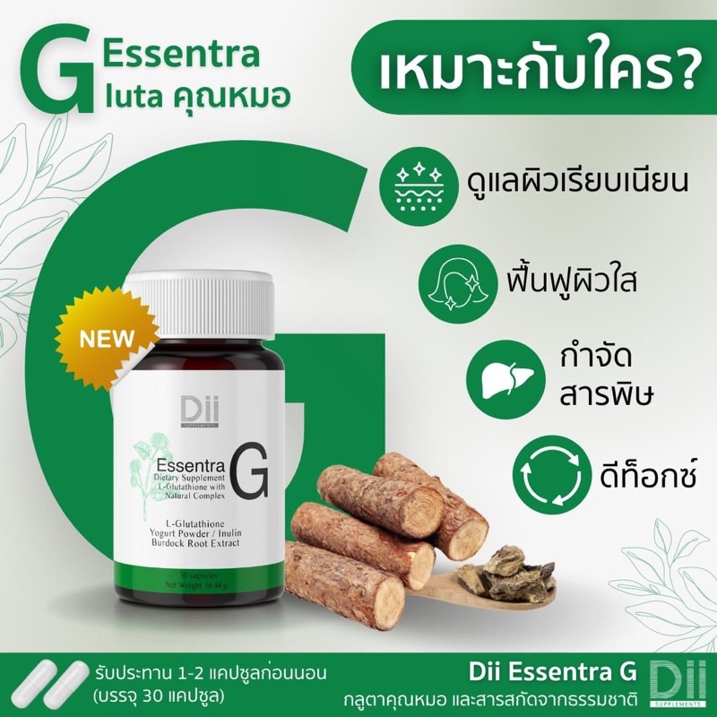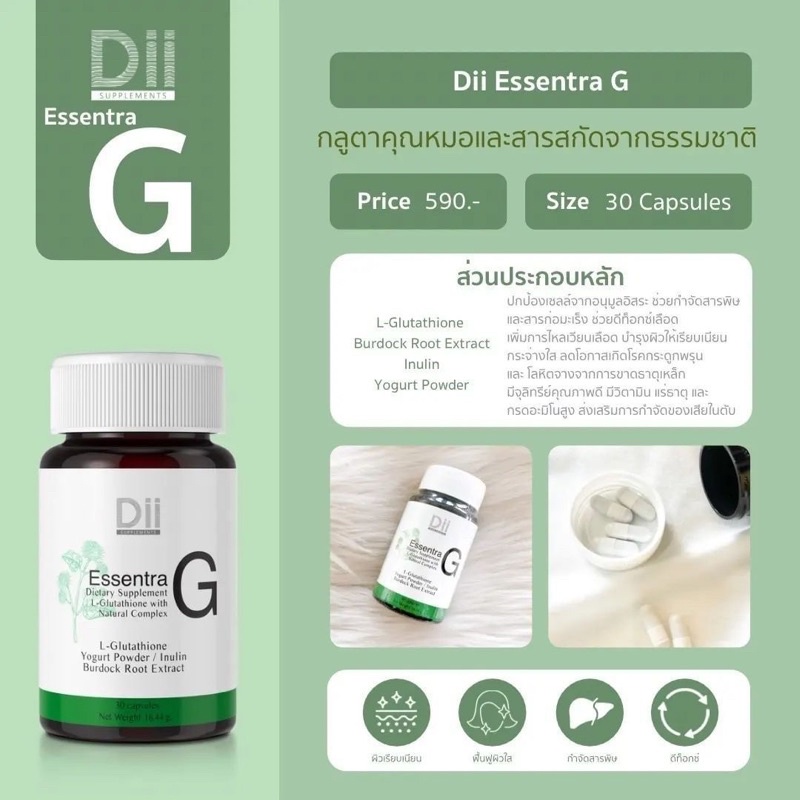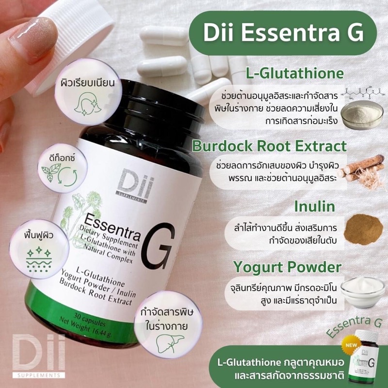 EXP.2026-04-04 Dii Essentra G กลูตาไธโอนสูตรคุณหมอ เพื่อผิวใสและดีท็อกซ์สารพิษ (30 แคปซูล)