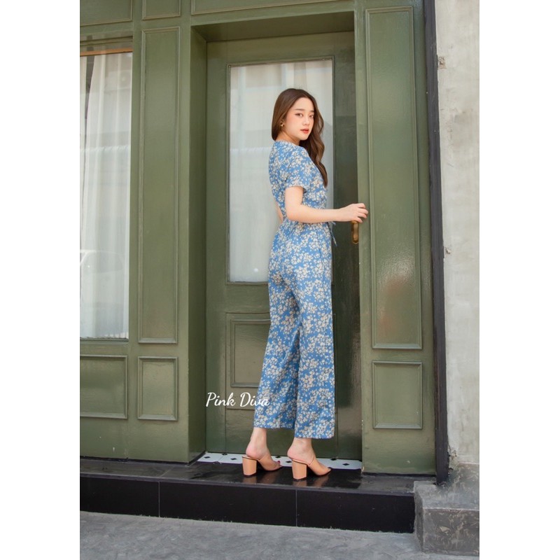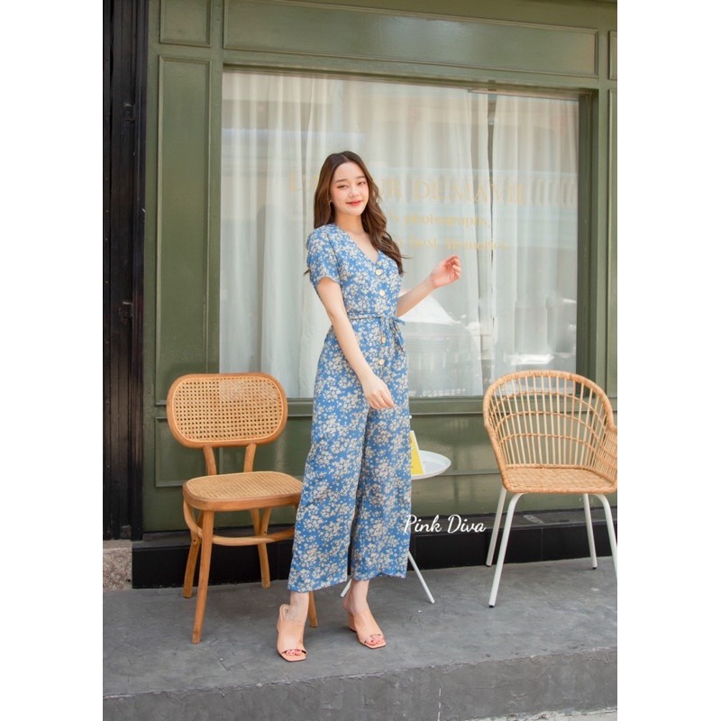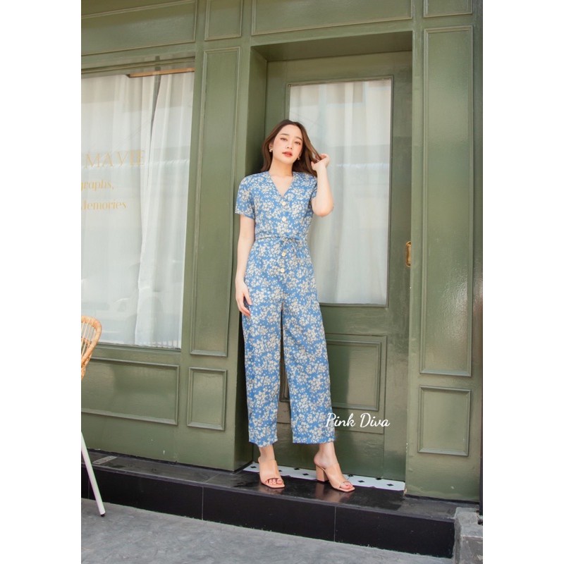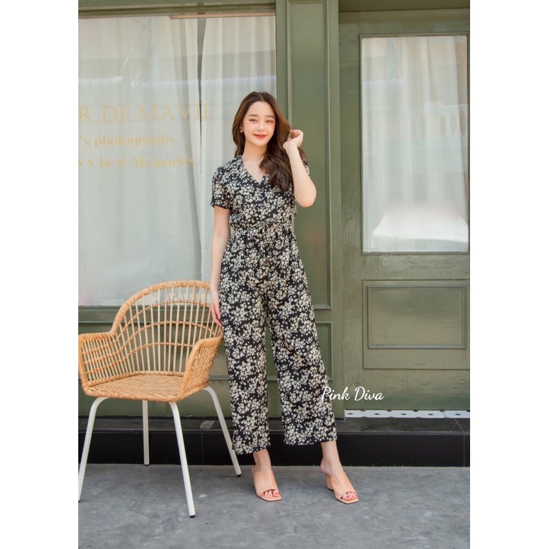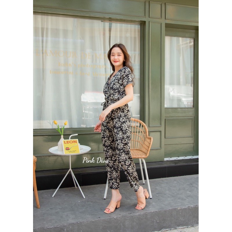 จั๊มสูทลายดอก Daliajumpsuit #J80 Jumpsuit จั้มสูทขายาว กระดุมหน้า สายผูกเอว ซับในกางเกง by Pink Diva