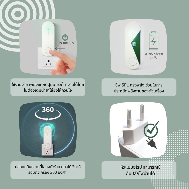 ไล่แมลง ไล่ยุง ครอบคลุมพื้นที่ 60 ตร.ม. เครื่องไล่ยุงแบบเสียบปลั๊ก เครื่องไล่ยุงไฟฟ้า ด้วยคลื่น อัลตราโซนิก