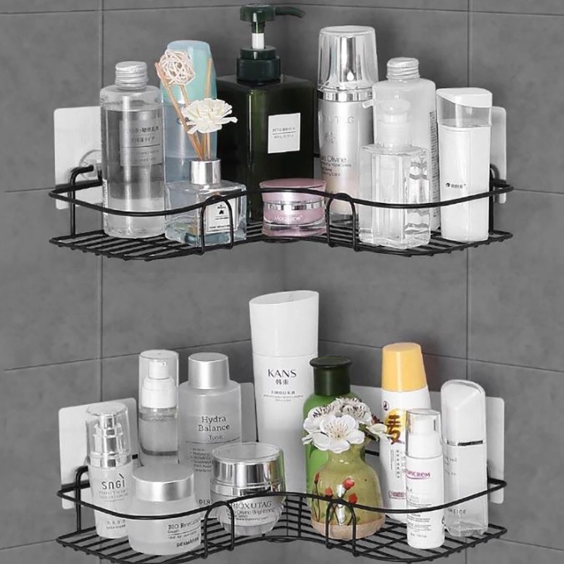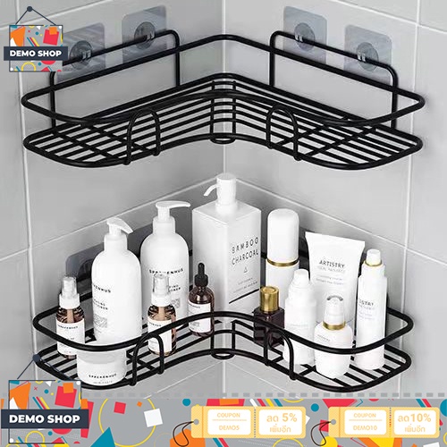 ชั้นวาง ของติดผนัง ชั้นวางของ ไม่ต้องเจาะผนัง ที่วางของเข้ามุมสามเเหลียม สําหรับจัดเก็บอุปกรณ์อาบน้ํ