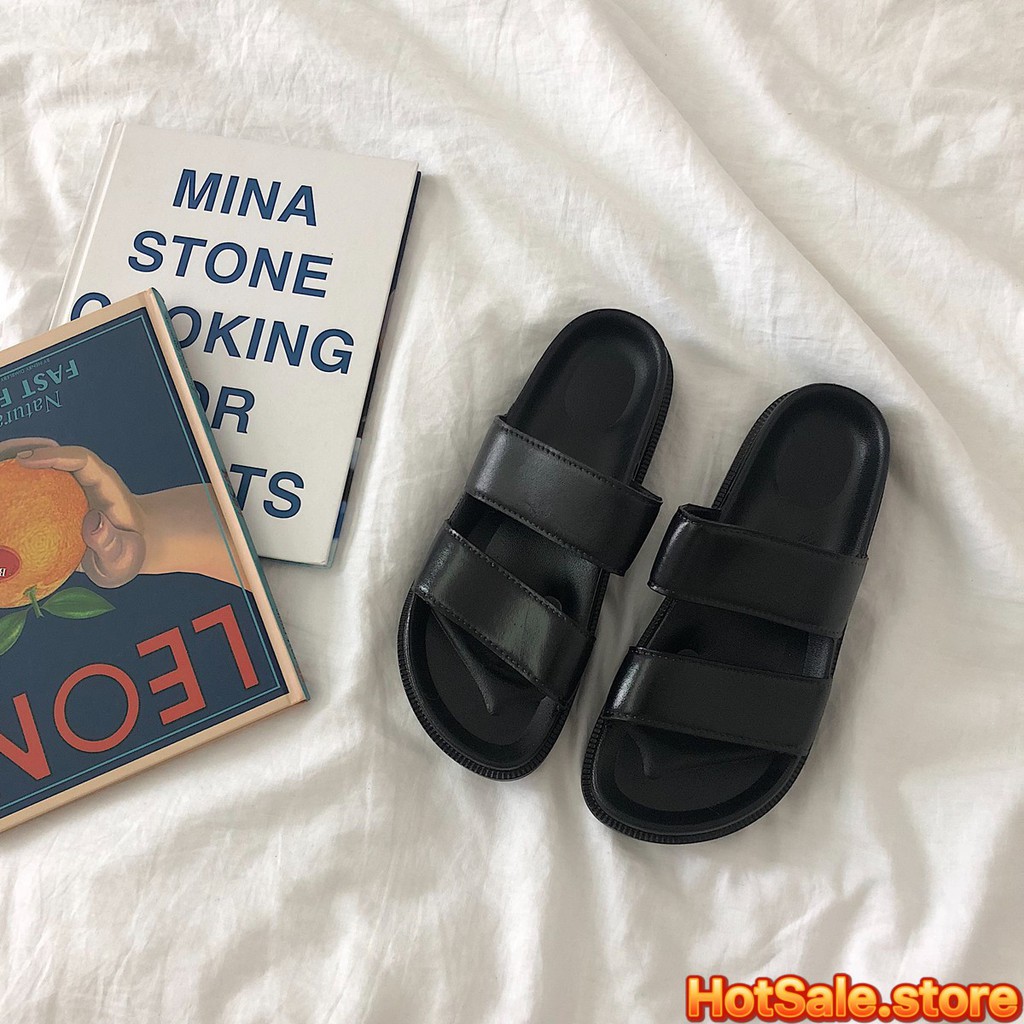 ส่งเร็ว🚚รองเท้าแตะแบบสวมสองตอนรองเท้ารุ่นใหม่🔥2020สองสายสีดำ🚶น้ำหนักเบาสบายไม่ลื่น ยางนิ่ม✨แฟชั่นเกาหลี✨พริตตี้T-013T