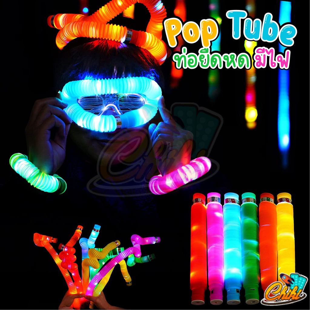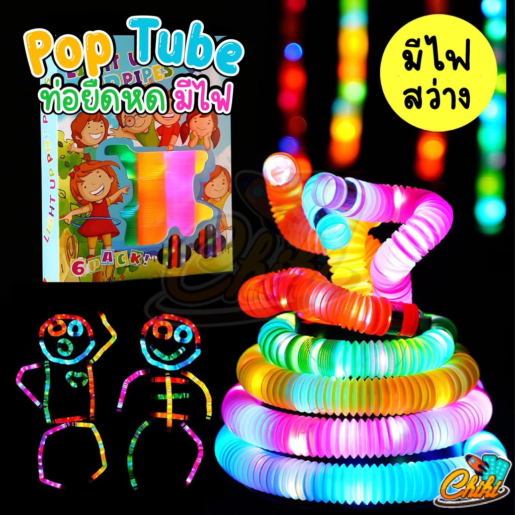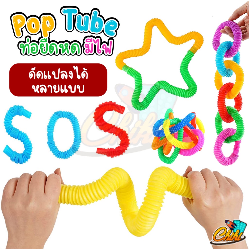 🔥พร้อมส่ง🔥 ของเล่น Pop Tube ท่อยืดหด คลายเครียด มีไฟ สําหรับเด็ก fidget pop it ท่อ ของเล่นเสริมพัฒนาการ ท่อป๊อป หลอดป๊อป