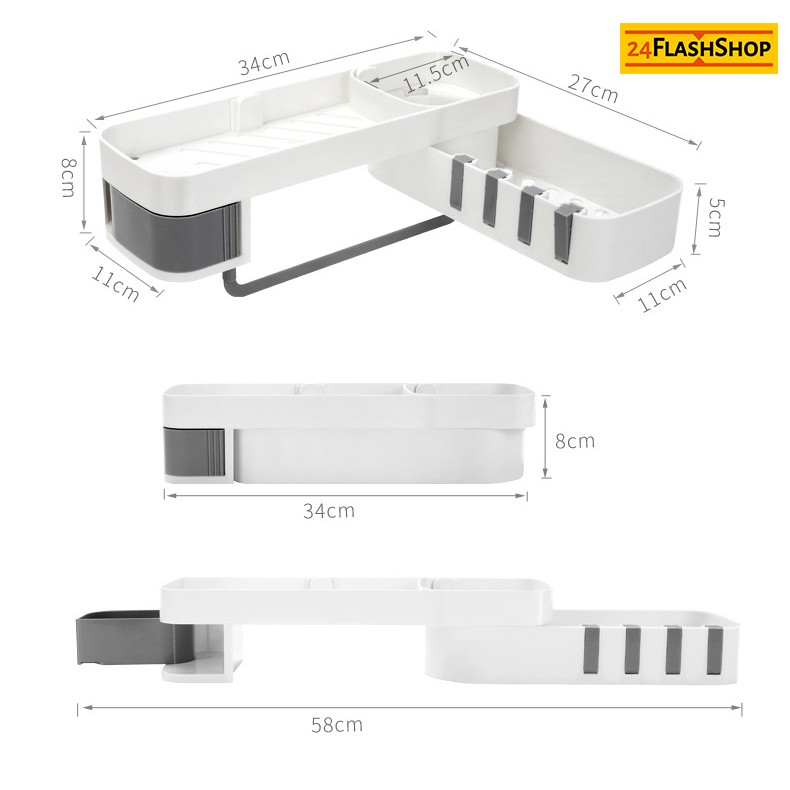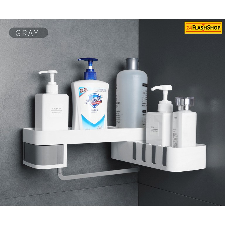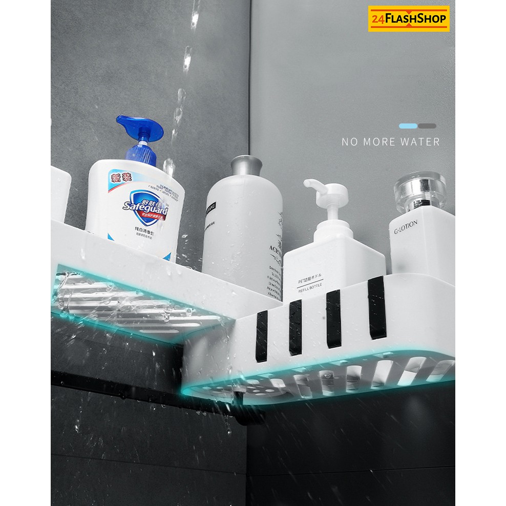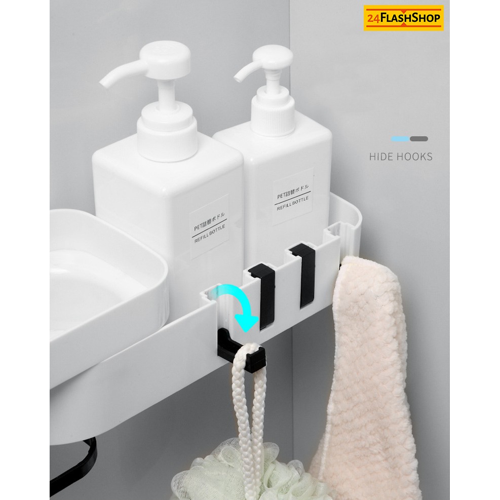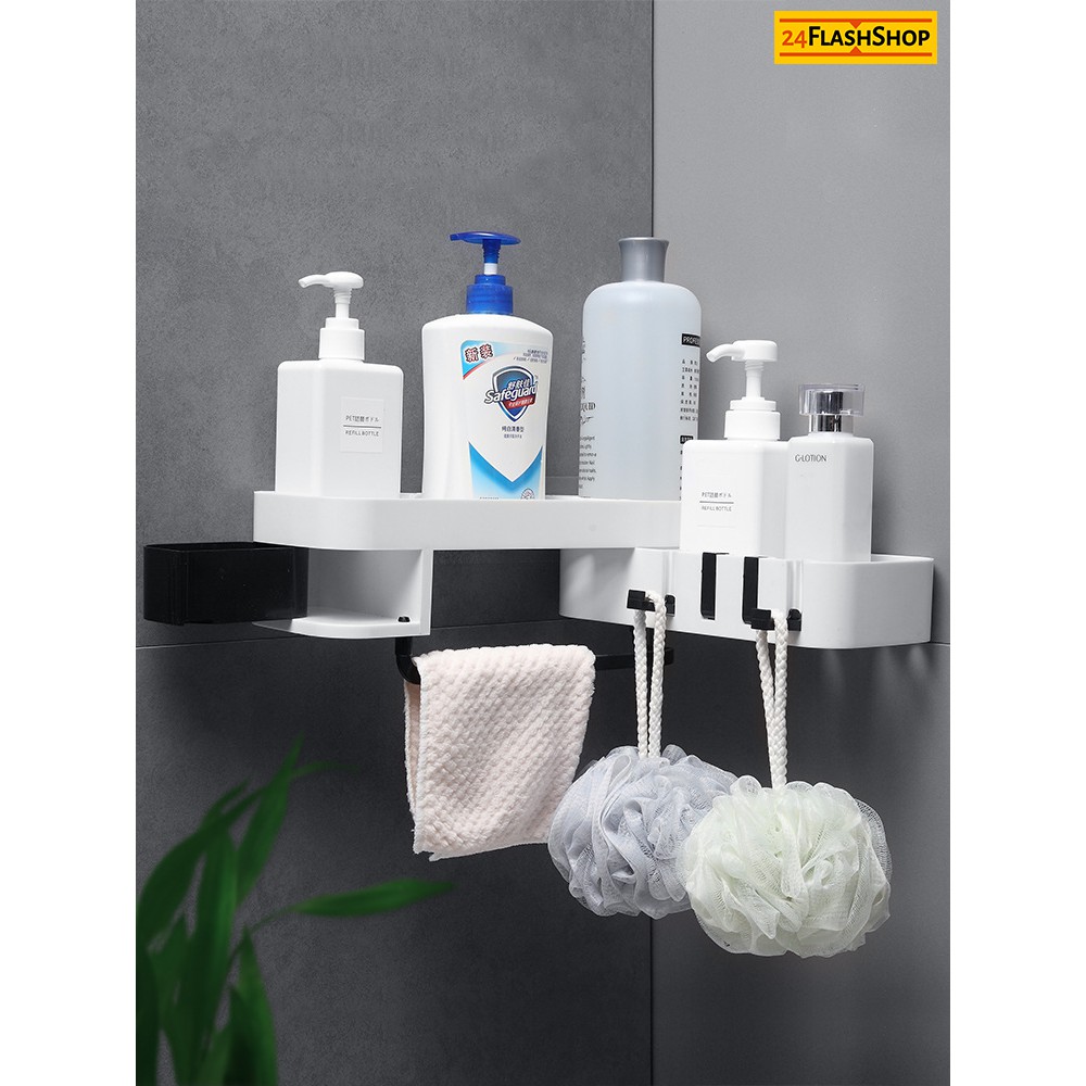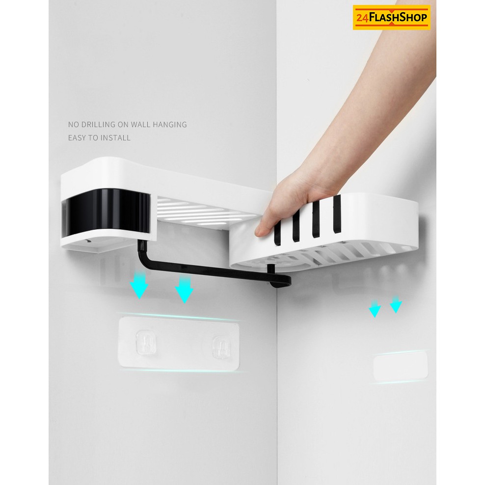 ชั้นวางของในห้องน้ำ ติดผนัง เข้ามุม มีตะขอแขวน ติดตั้งง่าย ไม่ต้องเจาะผนัง