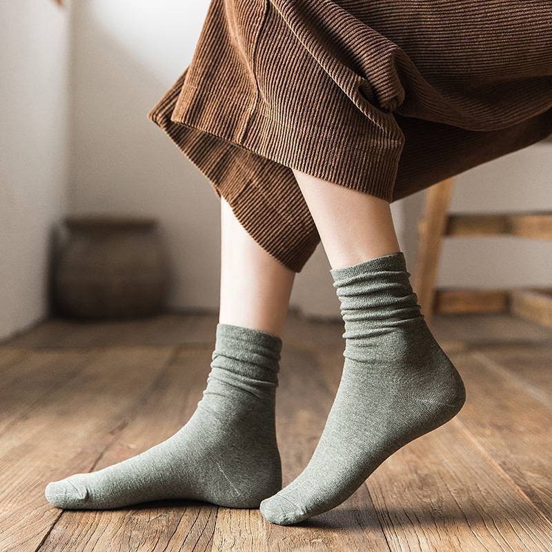 พร้อมส่ง**สั่งครบ10คู่ แถม1คู่** ถุงเท้าข้อกลางสไตล์วินเทจ ขนาด Free size ถุงเท้าข้อยาว