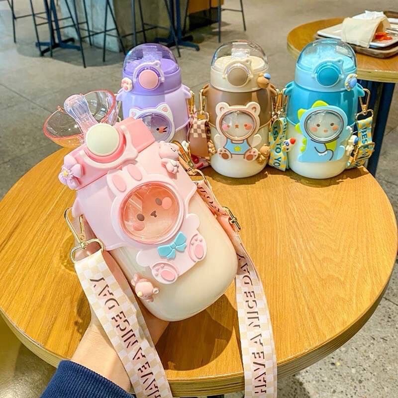 💓กระติกน้ำเด็ก หลอดดูด กระบอกน้ำไปโรงเรียน มีสายสะพาย
