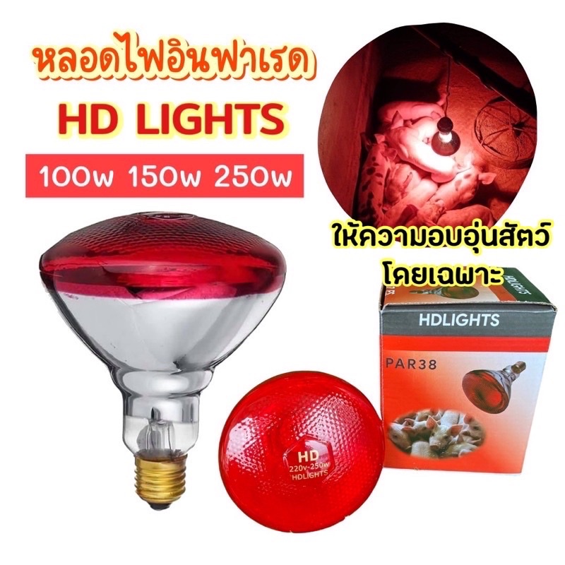 หลอดงานไทย‼️ ให้ความอบอุ่นสัตว์เลี้ยง ยี่ห้อ HD LIGHTS แบบหนาพิเศษ 150 วัตต์ และ250วัตต์ ไฟกกสัตว์