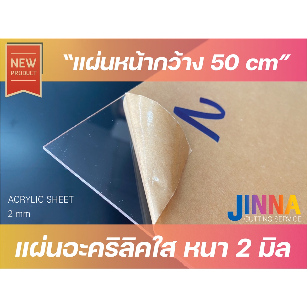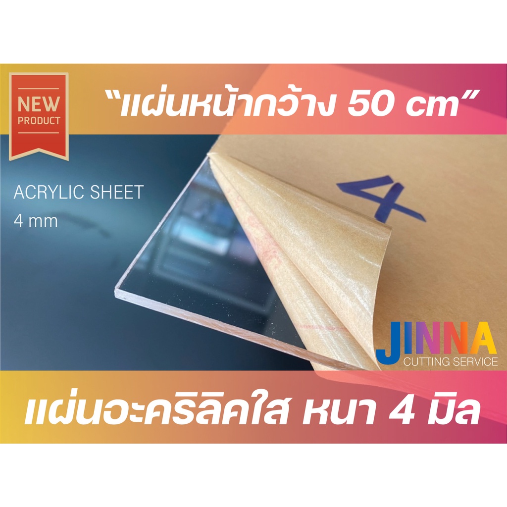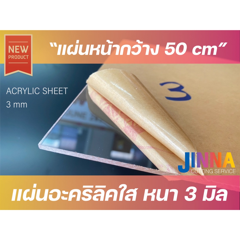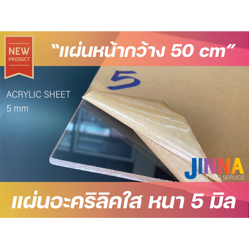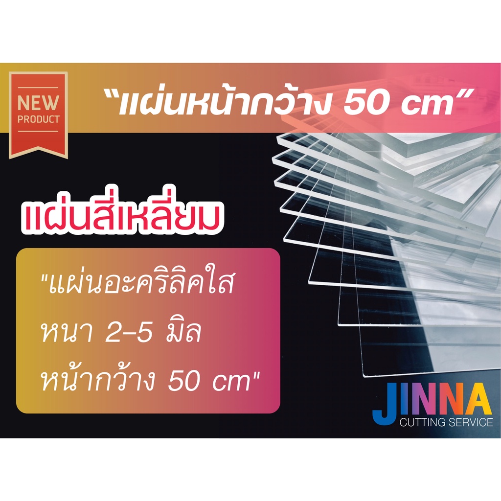 หน้ากว้าง 50 cm อะคริลิคใส ตัดแผ่นสี่เหลี่ยม หนา 2-5 มิล หลายขนาด