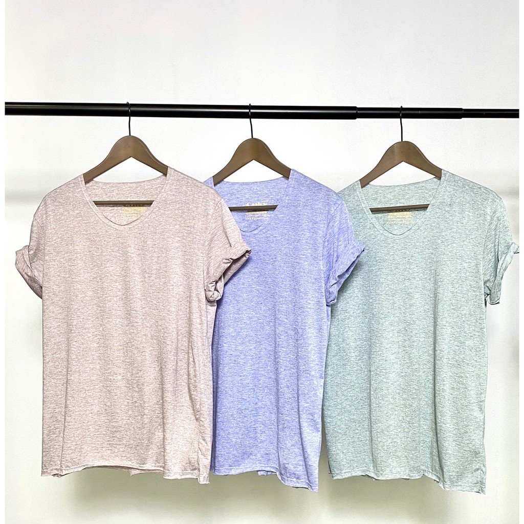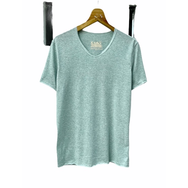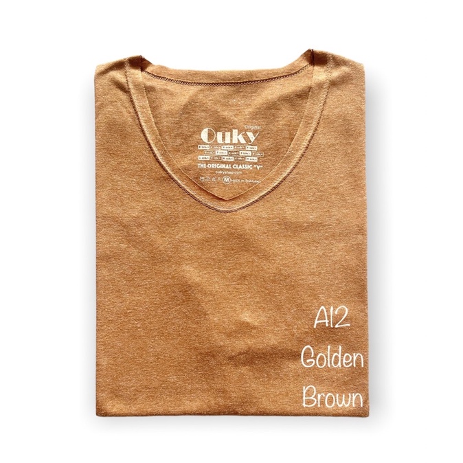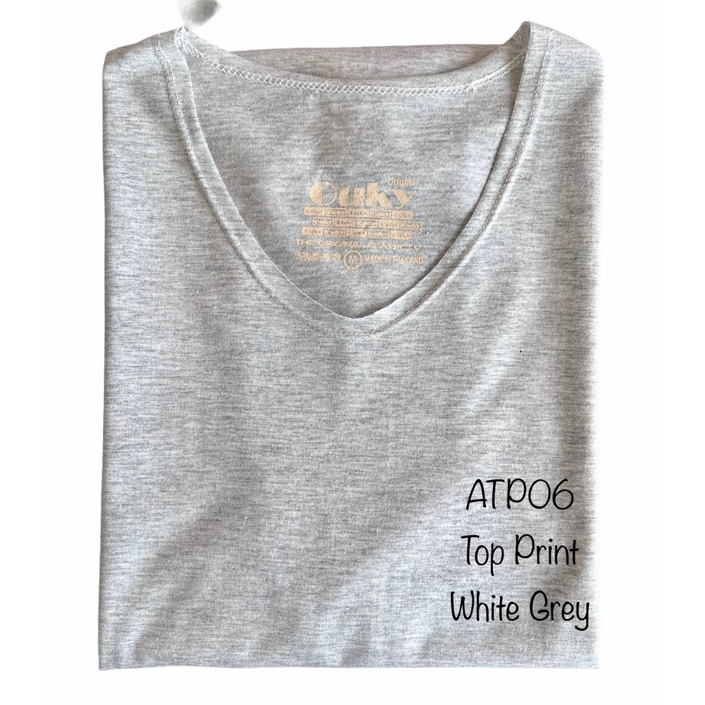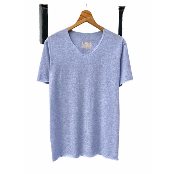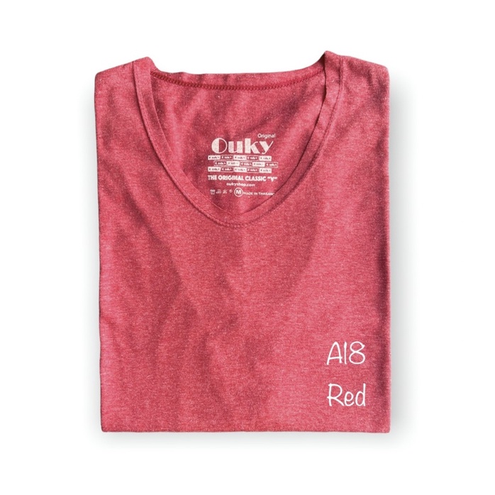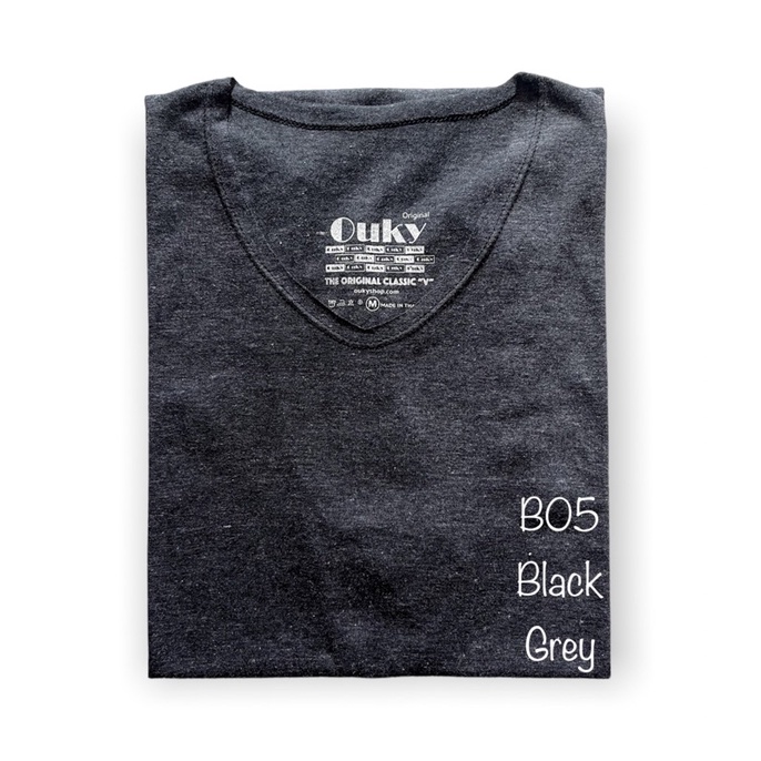 เสื้อยืด คอวี ผ้าคอตตอนผสม สีท๊อปดราย Ouky