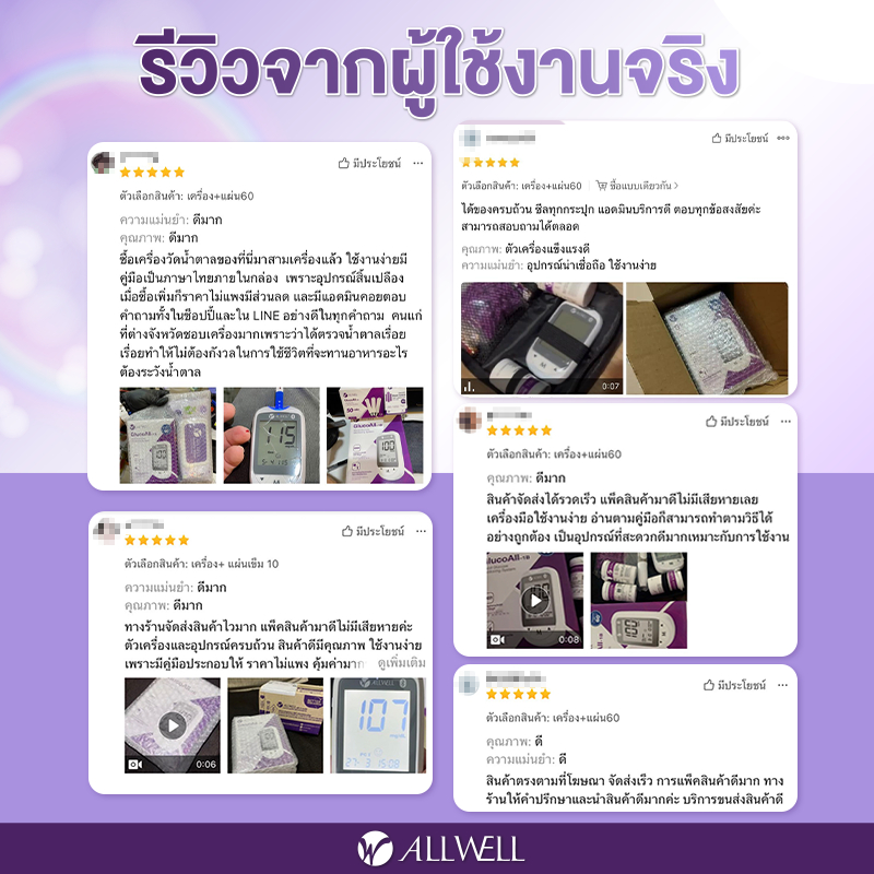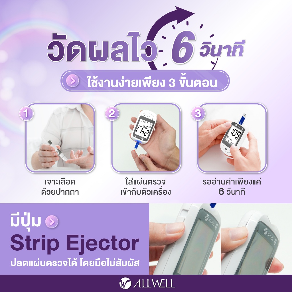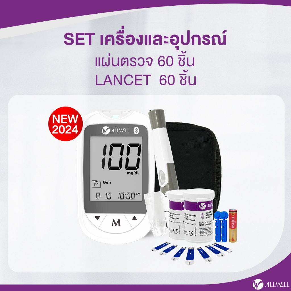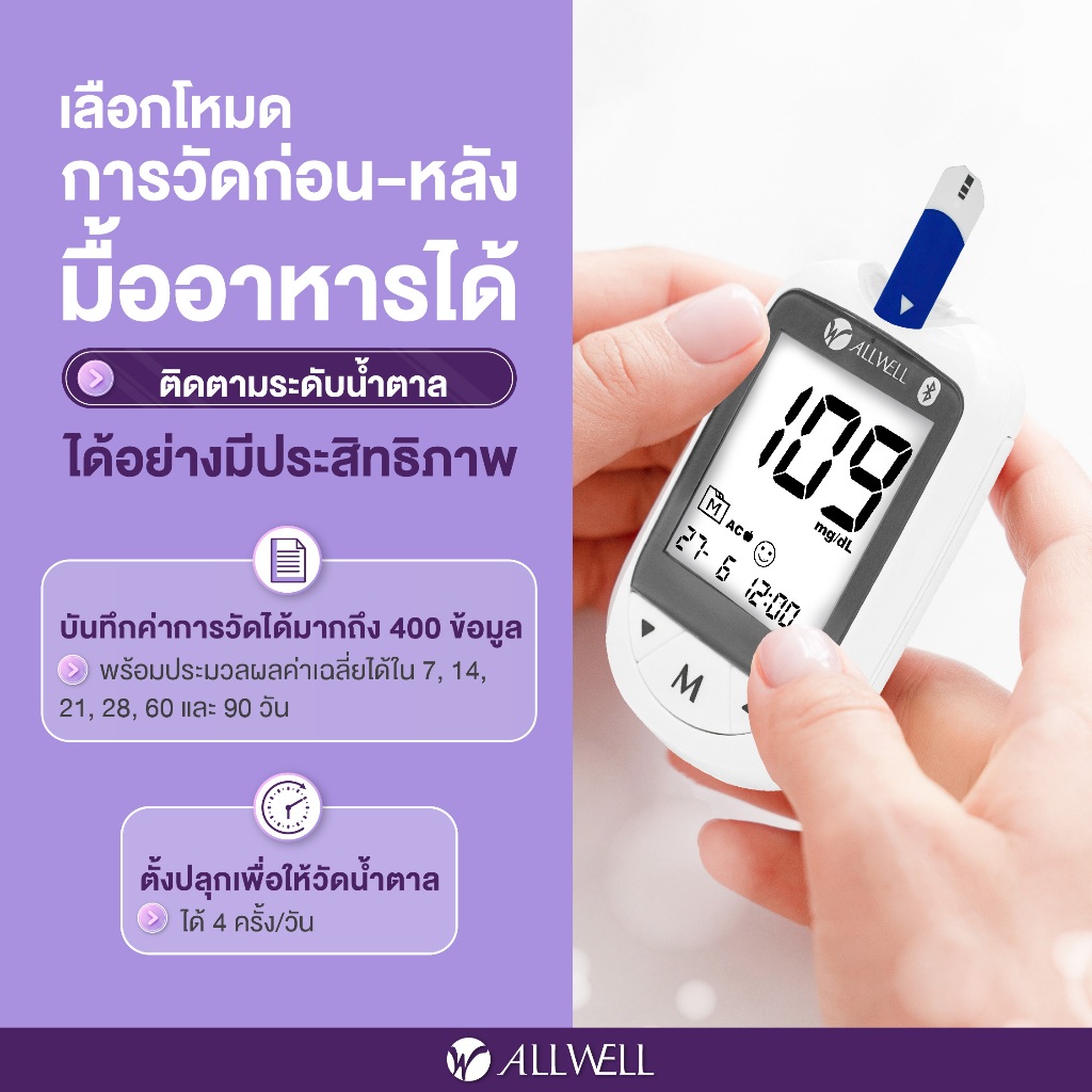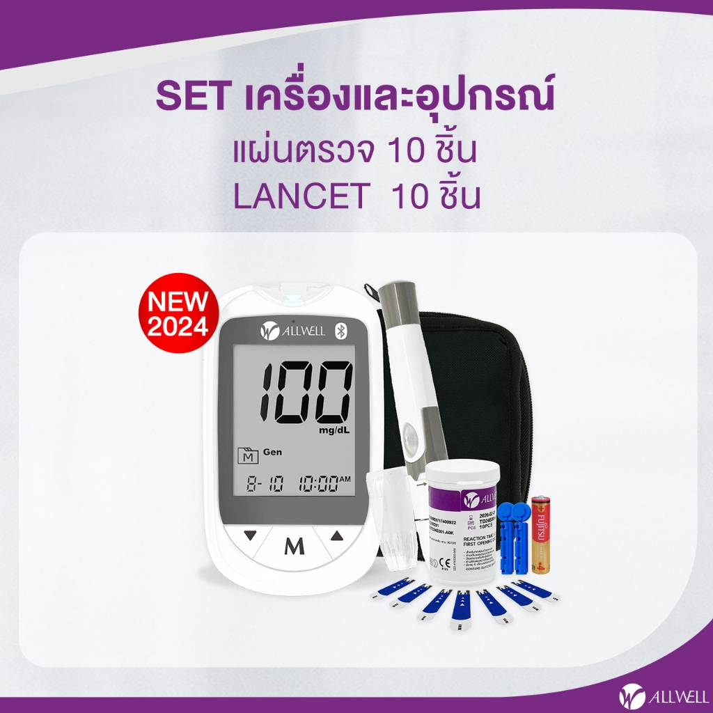 ALLWELL เครื่องวัดระดับน้ำตาลในเลือดและแผ ่นตรวจ รุ่น GLUCOALL-1B มีให้เลือกหลายเซต น้ำตาลในเลือด
