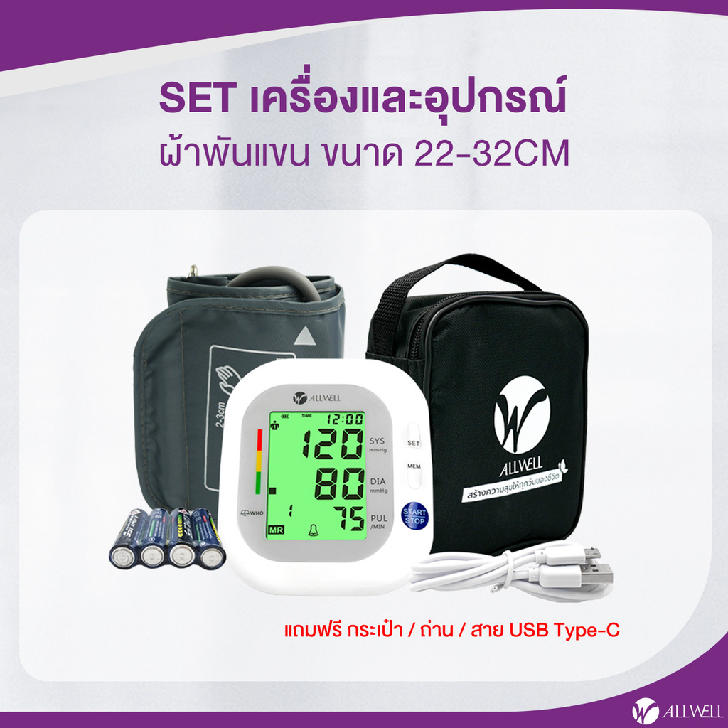 ALLWELL เครื่องวัดความดัน ของแท้ ใช้งานง่า ย หน้าจอสี เสียงไทย รับประกัน 5 ปี รุ่น BSX593 Blood Pressure Monitor