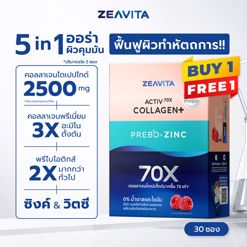 [1แถม1] Zeavita ซีวิต้า คอลลาเจน ไดเปปไทด์100% + วิตามินซี & บี3 ผิวและข้อ (30ซองx1กล่อง) collagen dipeptide อาหารเสริม