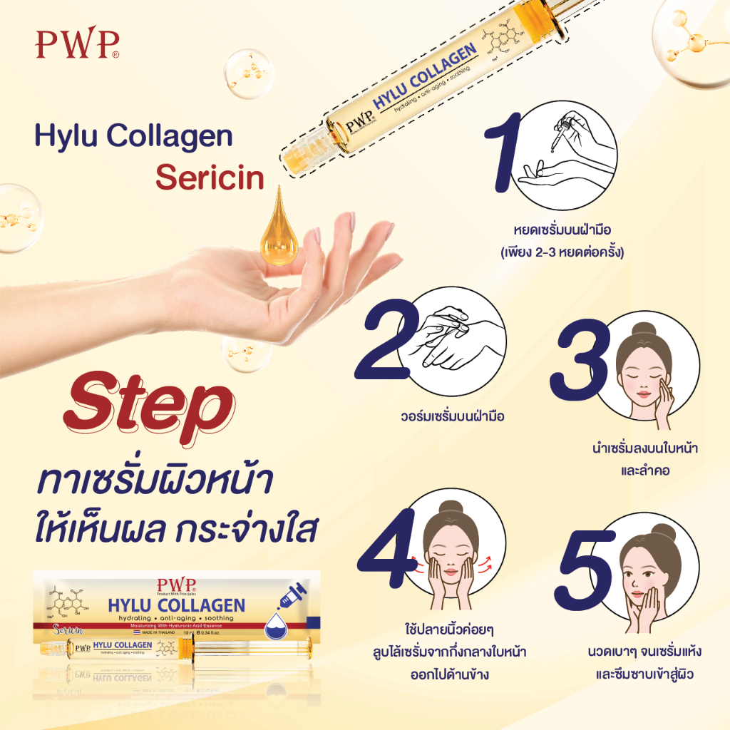 PWP Hylu Collagen Sericin 10ml | เซรั่มไฮยา คอลลาเจน ผิวดูกระจ่างใส เรียบเนียน อิ่มฟู