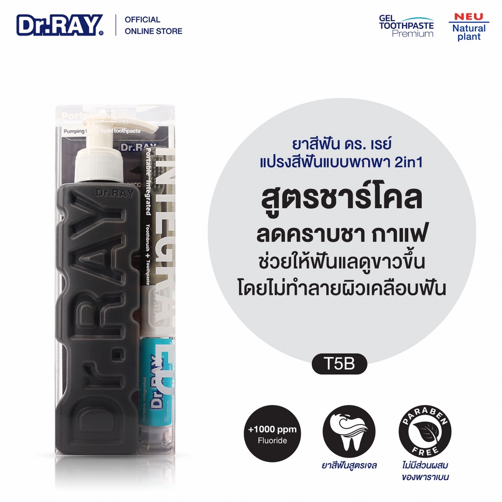 Dr.RAY ยาสีฟันเจล 150g สูตรชาร์โคล + แปรงสีฟันพกพา 2 in 1 No.T5B