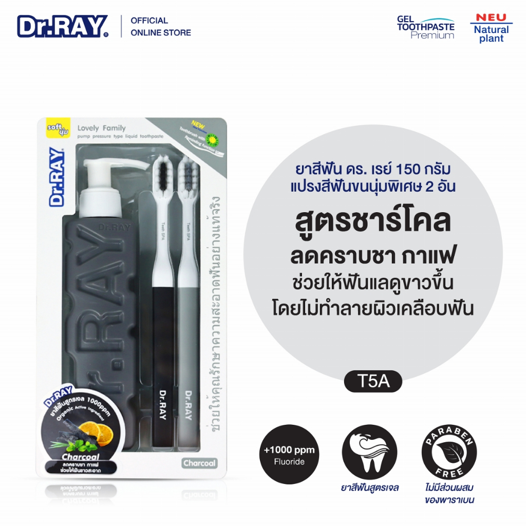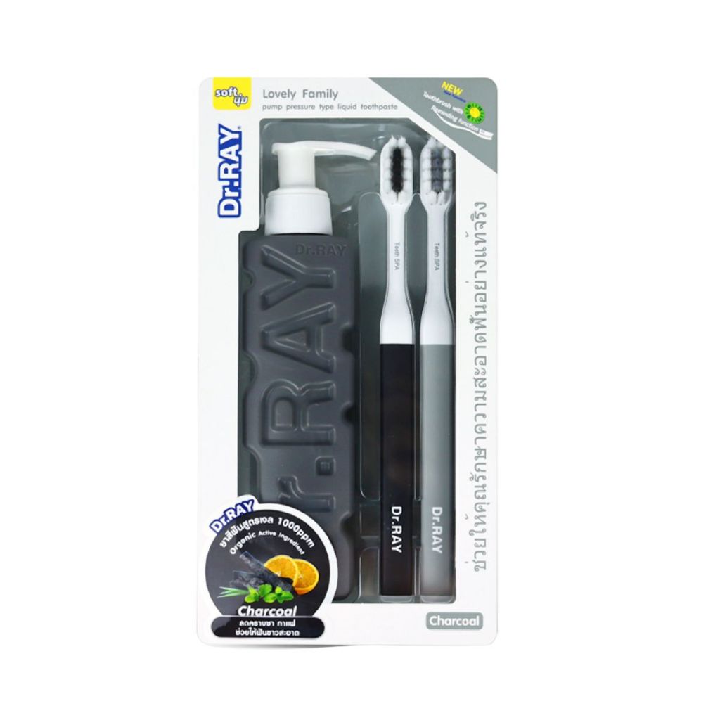 Dr.RAY ยาสีฟันเจล 150g สูตรชาร์โคล + แปรงสีฟันขน 4,560 เส้น 2ด้าม No.T5A