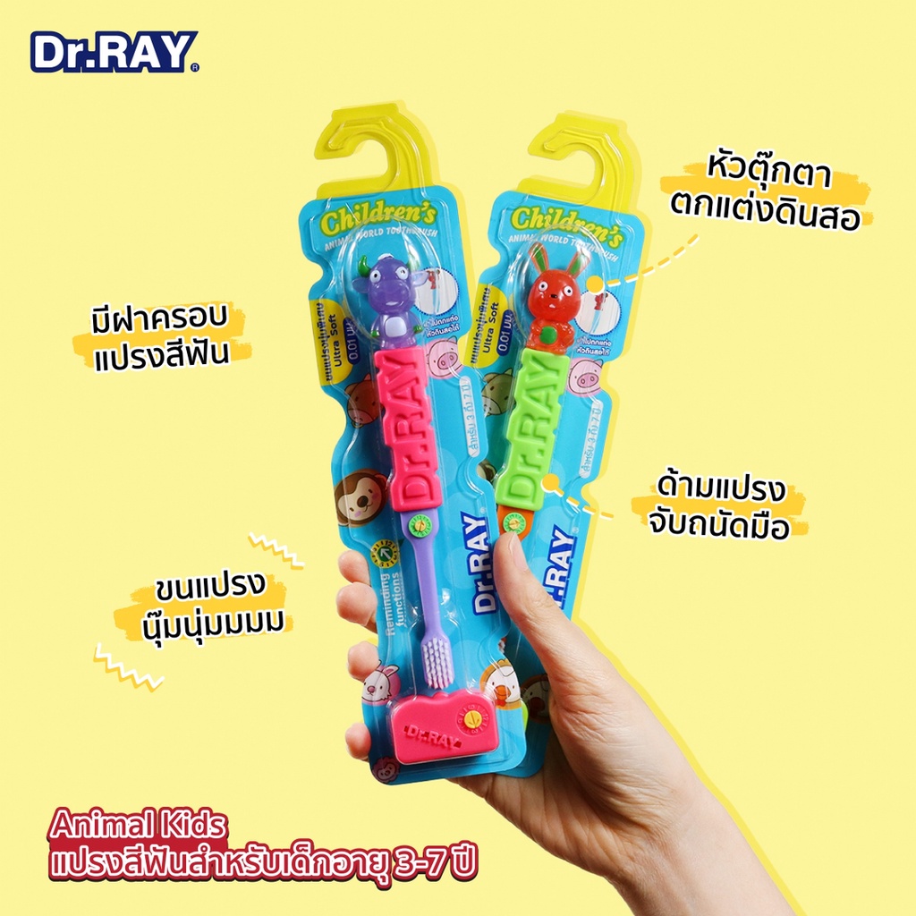 Dr.RAY แปรงสีฟันเด็ก 3 - 7 ปี รุ่น ANIMAL KIDS หัวตุ๊กตาสัตว์น่ารัก และ GOGODINO KIDS หัวตุ๊กตาไดโนเสาร์