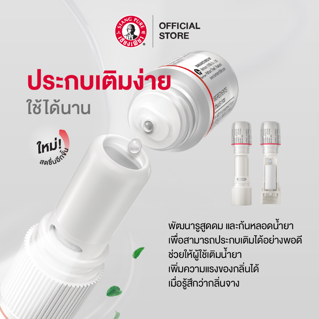 Siangpure Inhaler 2cc ยาดมเซียงเพียว สูตร 2 ฝาเกลียวมีห่วง ขนาด 2 ซีซี จำนวน 3 ชิ้น