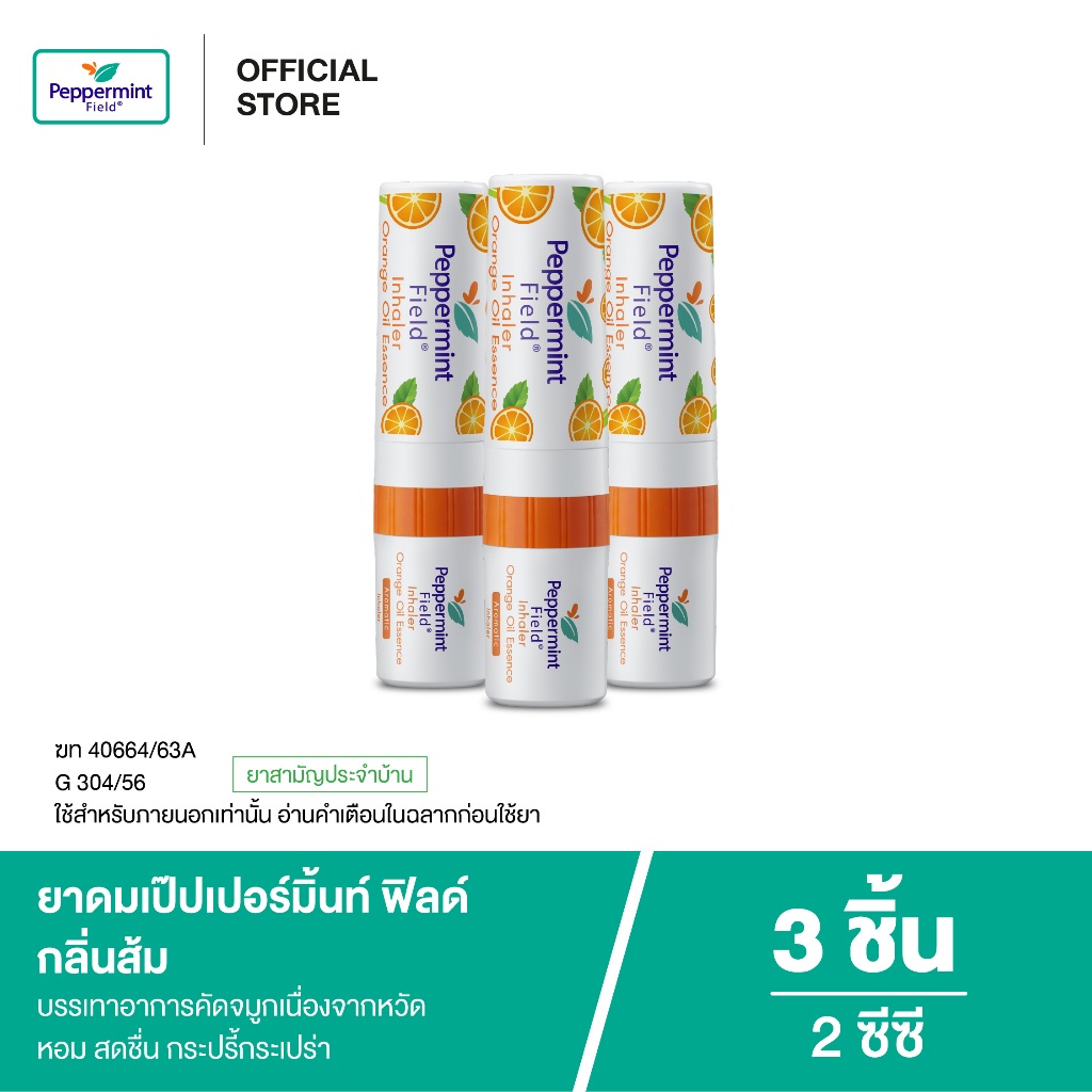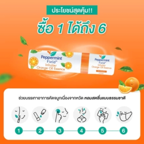 Peppermint Field Inhaler Orange Oil ยาดมเป๊ปเปอร์มิ้นท์ ฟิลด์ กลิ่นส้ม จำนวน 3 ชิ้น
