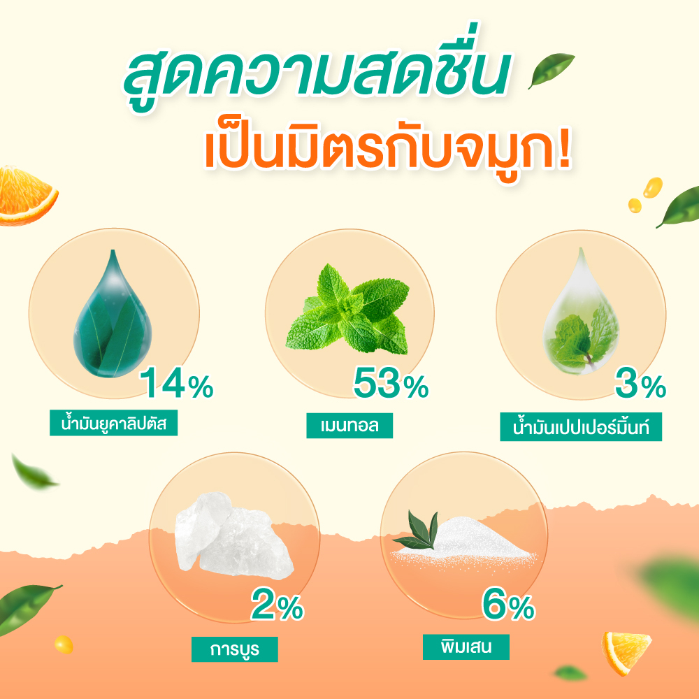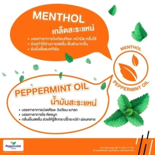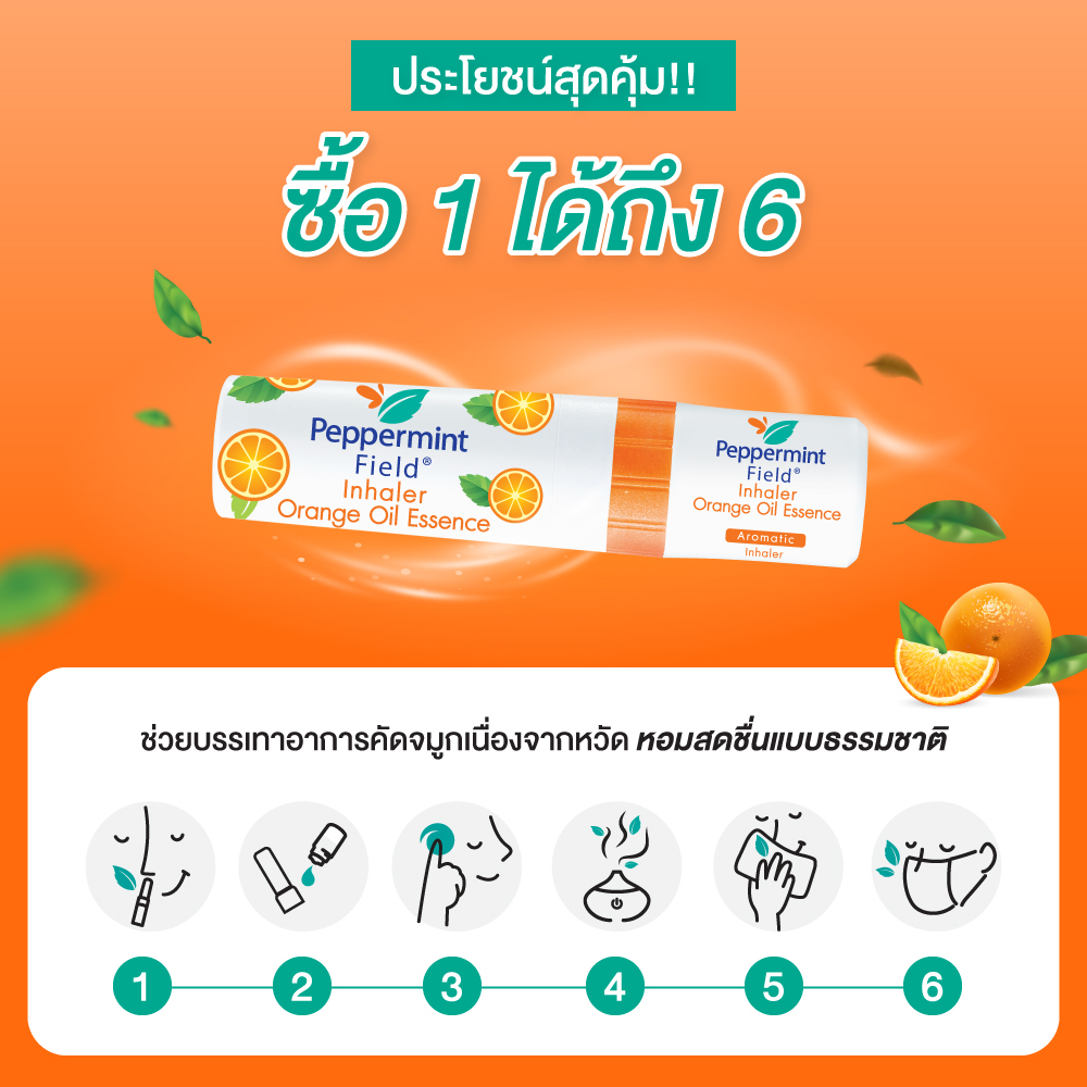 Peppermint Field Inhaler Orange Oil ยาดมเป๊ปเปอร์มิ้นท์ ฟิลด์ กลิ่นส้ม จำนวน 6 ชิ้น