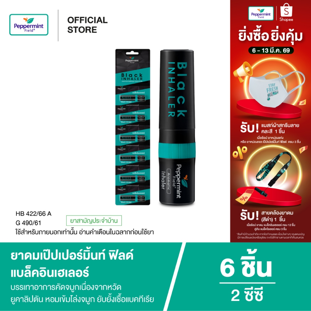Peppermint Field Black Inhaler ยาดมเป๊ปเปอร์มิ้นท์ ฟิลด์ แบล็คอินเฮเลอร์ จำนวน 6 ชิ้น