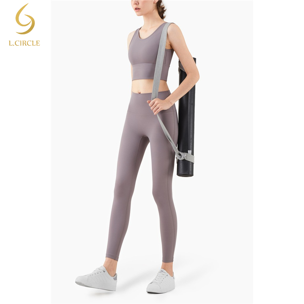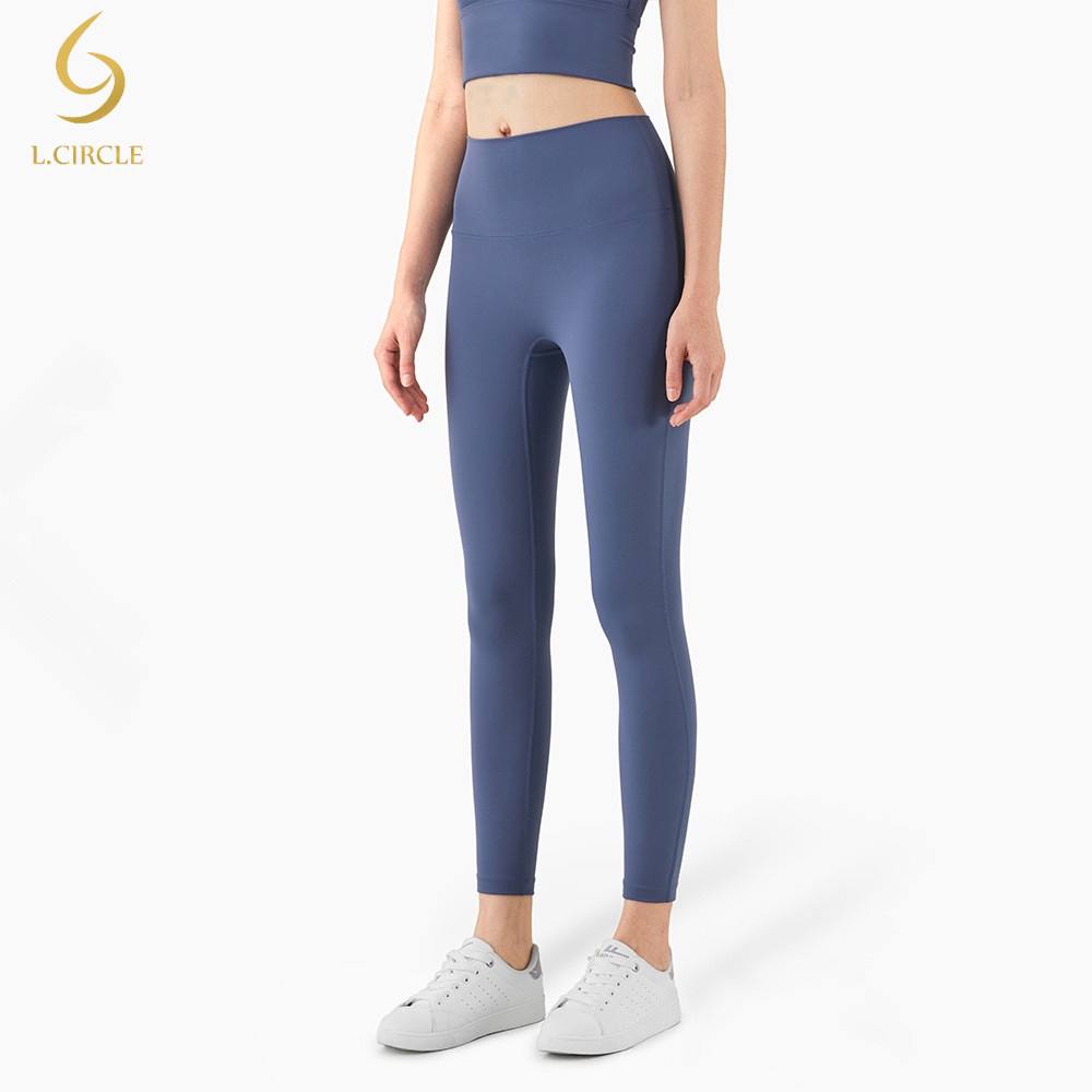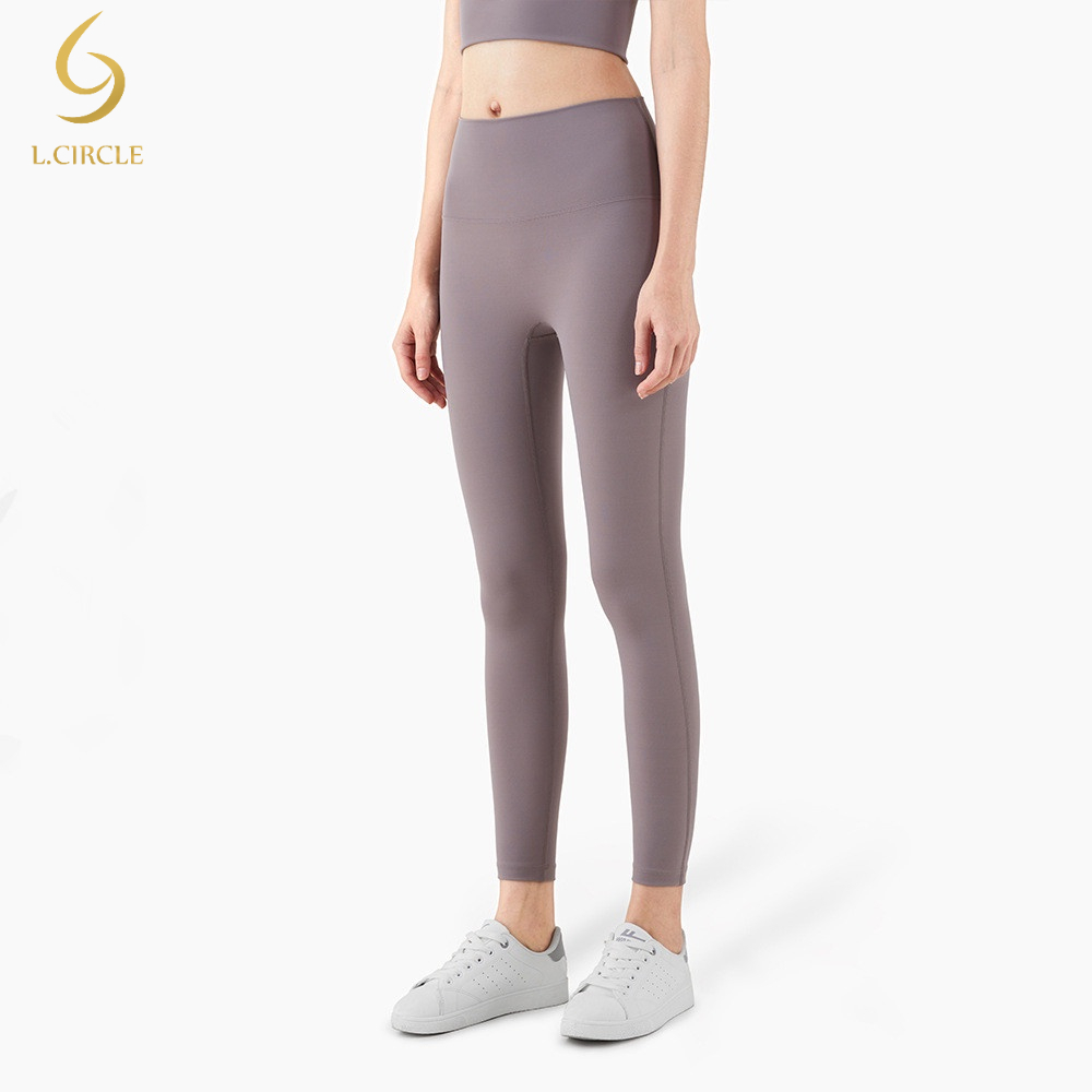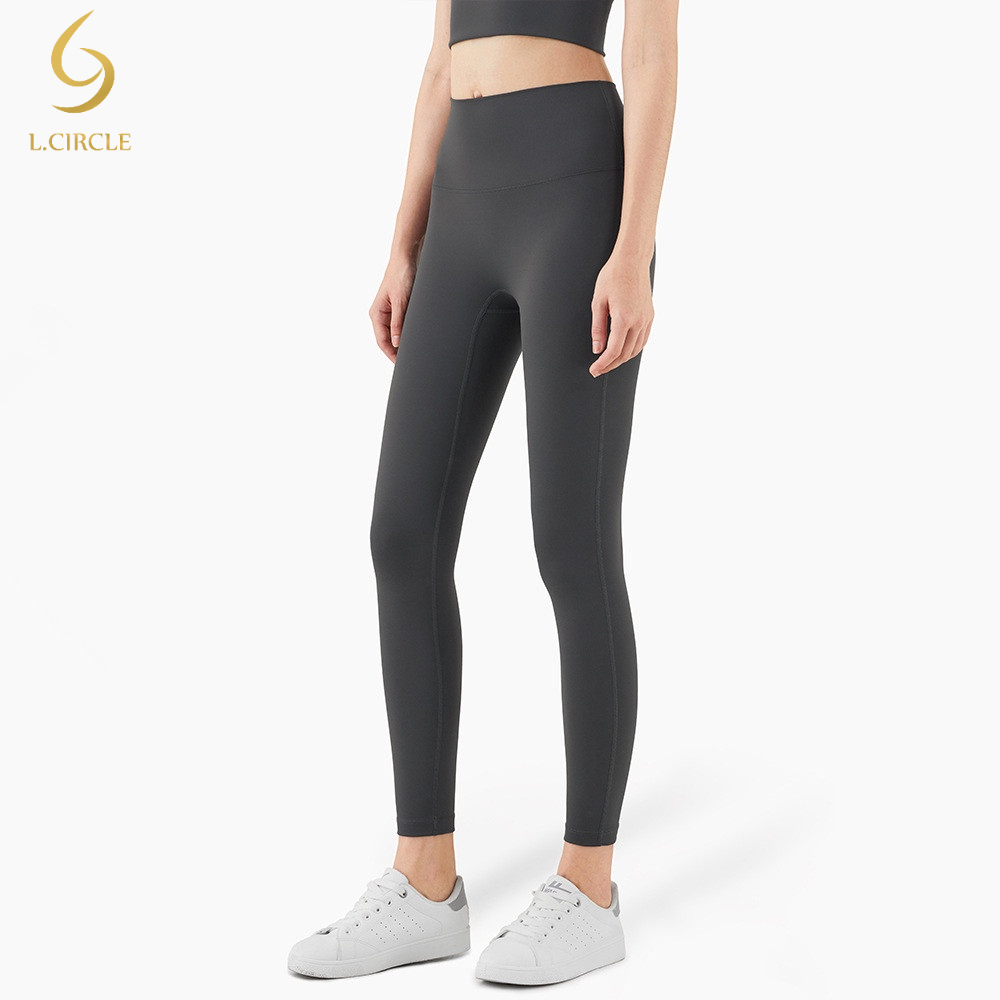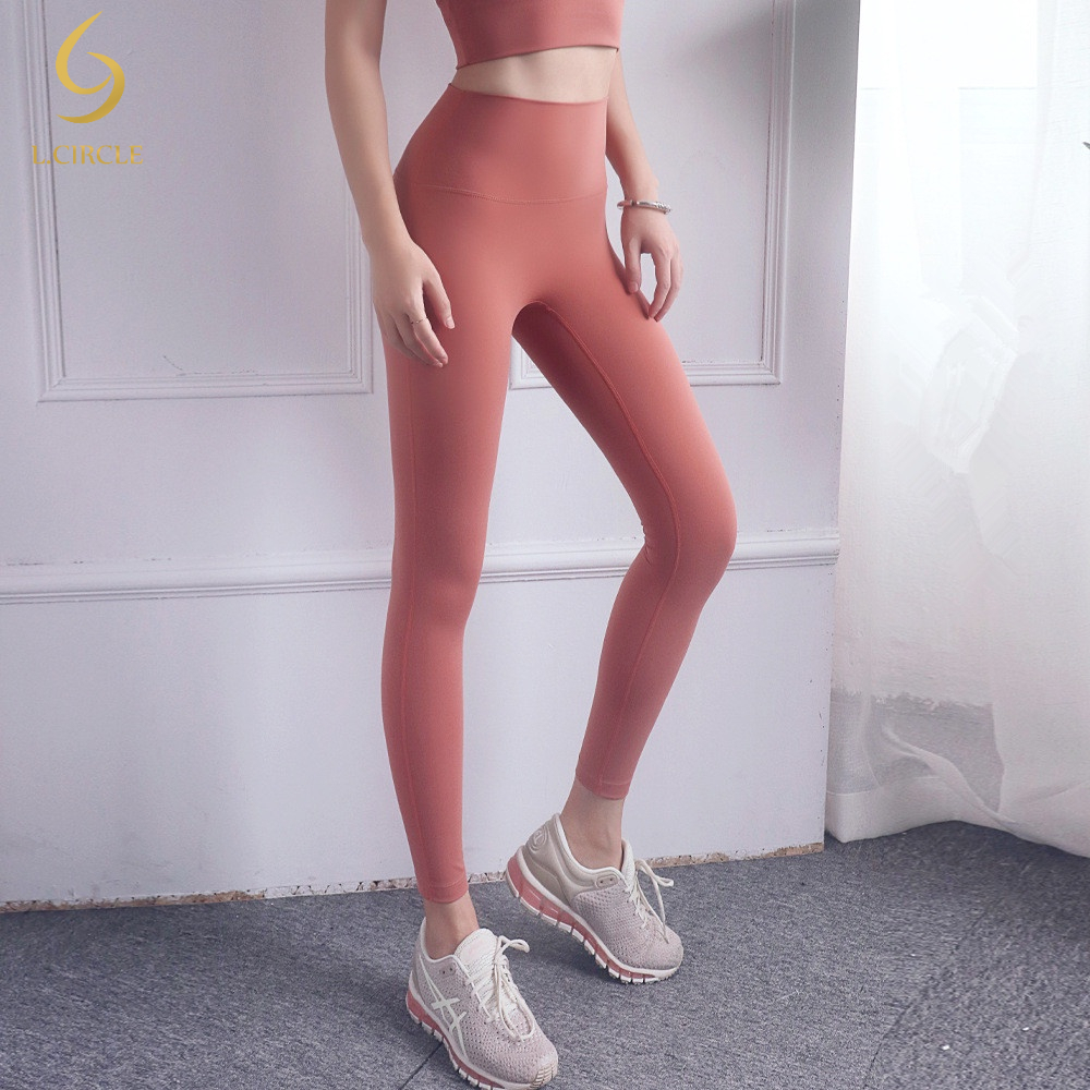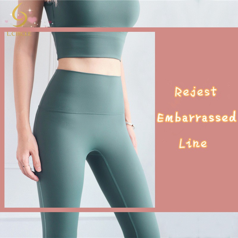 L.CIRCLEWomen Peach Hip เอวสูงไม่มีรอยต่อกางเกงขายาว Tummy Control Tights ฟิตเนสกีฬากางเกงโยคะ