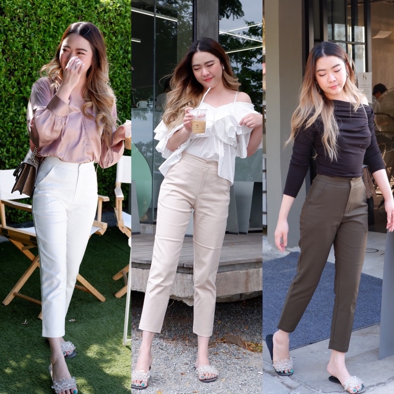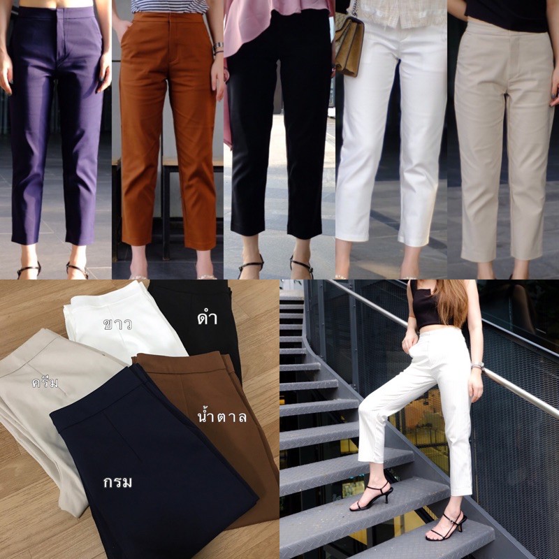 กางเกง8ส่วนตะขอหน้า ผ้าดับเบิ้ลซาติน