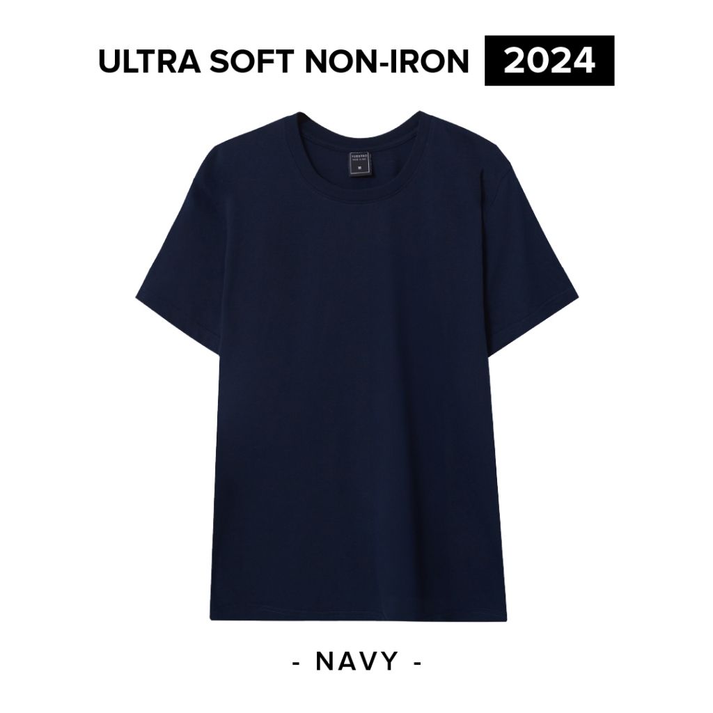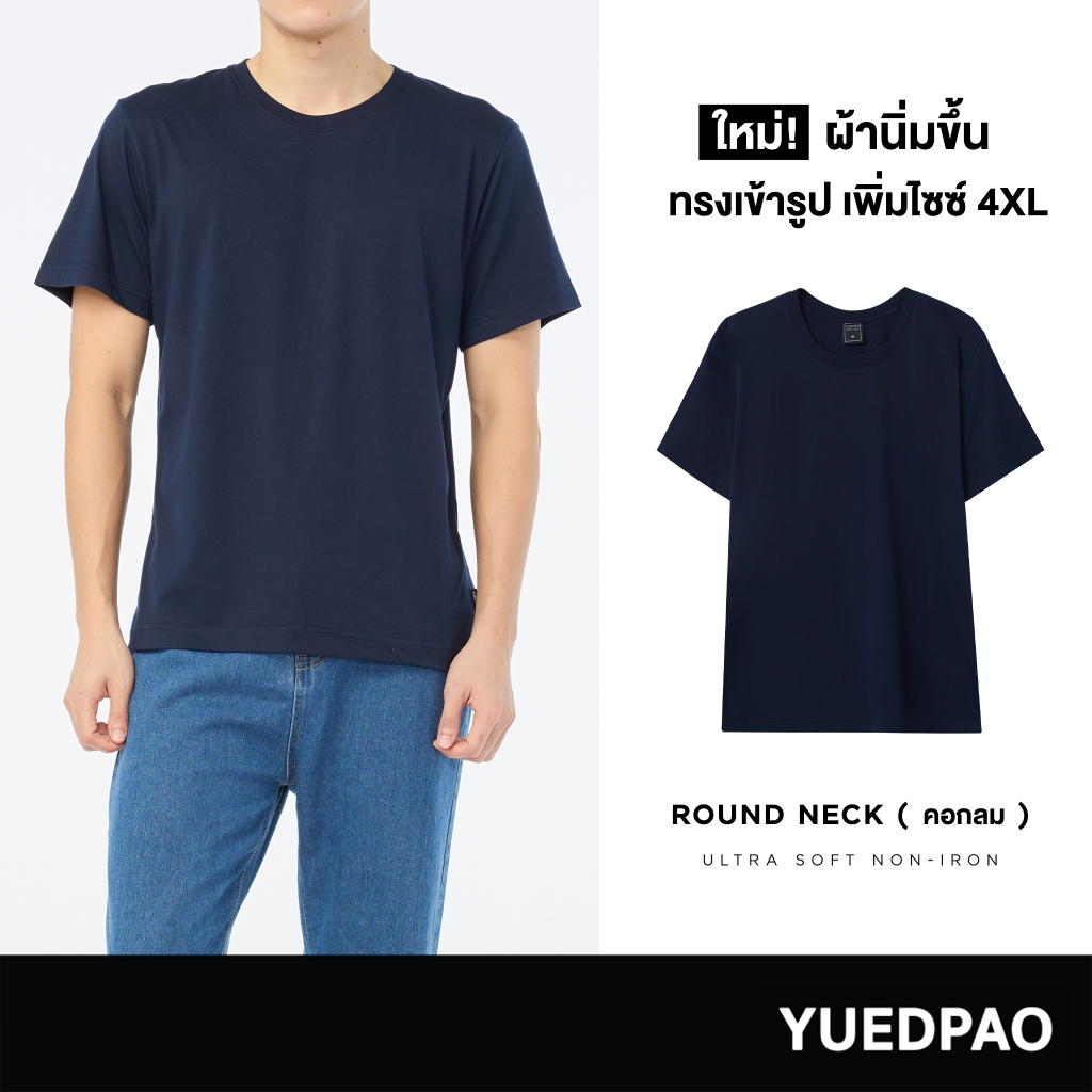 Yuedpao No.1 เสื้อยืด ไม่ย้วย ไม่หด ไม่ต้องรีด ผ้านุ่มใส่สบาย Ultrasoft Non-Iron เสื้อยืดสีพื้น เสื้อยืดคอกลม สีกรมท่า