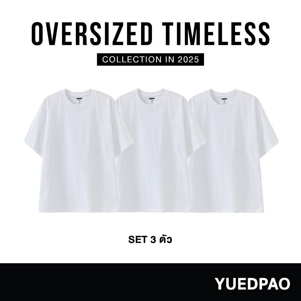 Yuedpao Oversized Timeless 2025+2026 ผ้าหนายับยากรีดง่าย เสื้อยืดทรงหลวม เสื้อยืดเปล่า โอเวอร์ไซส์ สี White