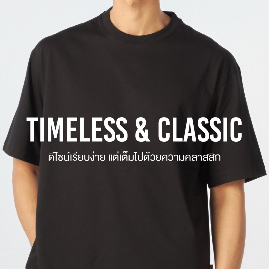 Yuedpao Oversized Timeless ผ้าหนายับยากรีดง่าย เสื้อยืดทรงหลวม ดีไซน์คลาสสิค เสื้อยืดเปล่า โอเวอร์ไซส์ สี Black