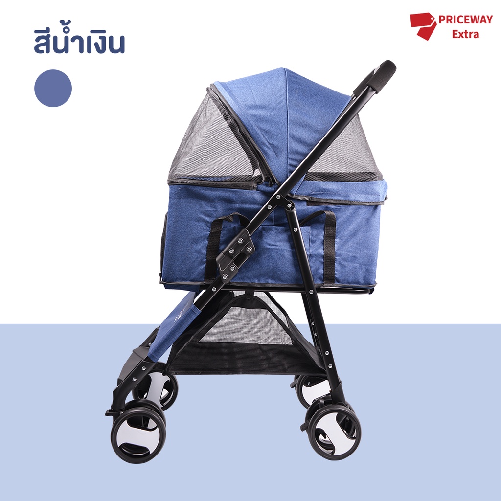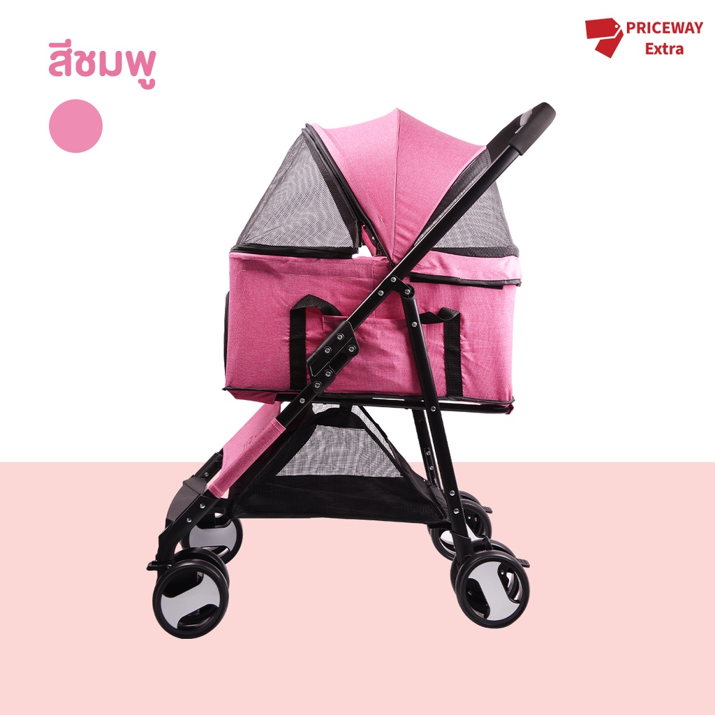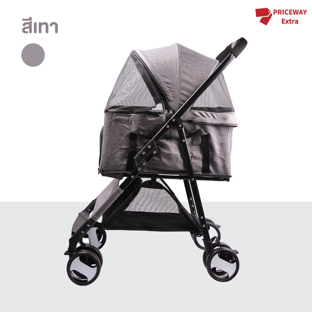 รถเข็นสัตว์เลี้ยง พับได้ ถอดเป็นคาร์ซีท สำหรับสุนัข แมว ขนาดใหญ่ รับน้ำหนัก 25kg ระบายอากาศดี 🐶🐱