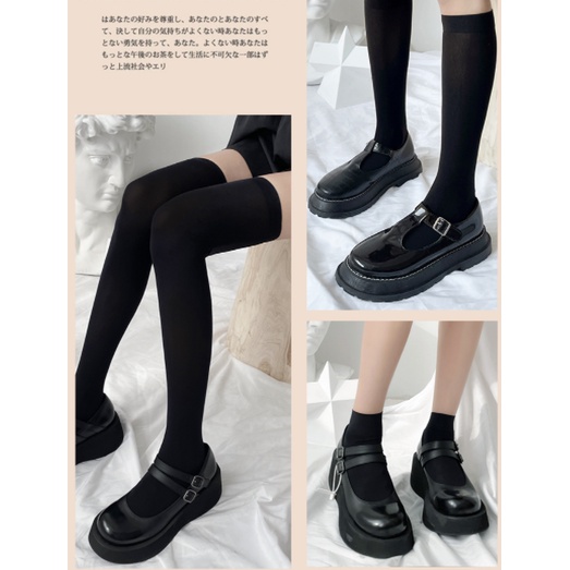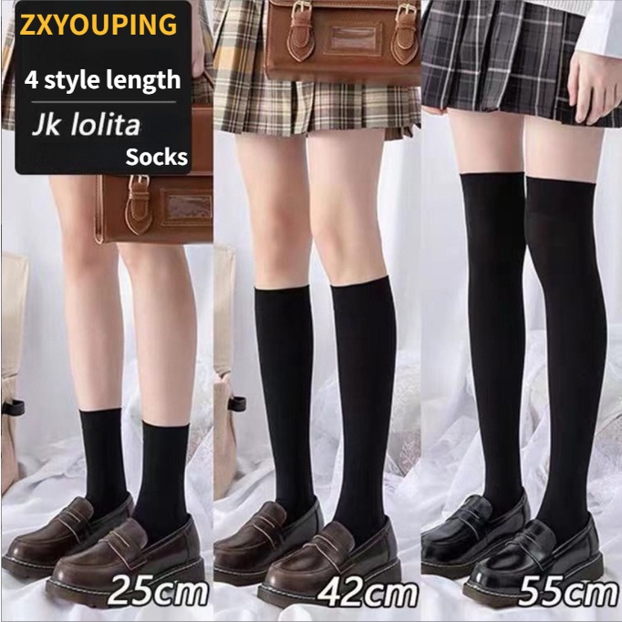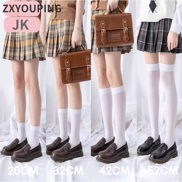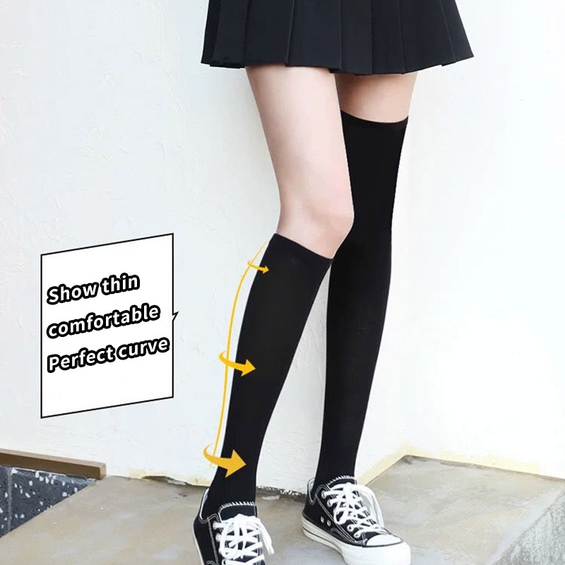ถุงเท้ายาวถึงเข่า ผ้ากํามะหยี่ แบบบาง สีขาว และสีดํา แฟชั่นฤดูร้อน สําหรับสตรี และนักเรียน