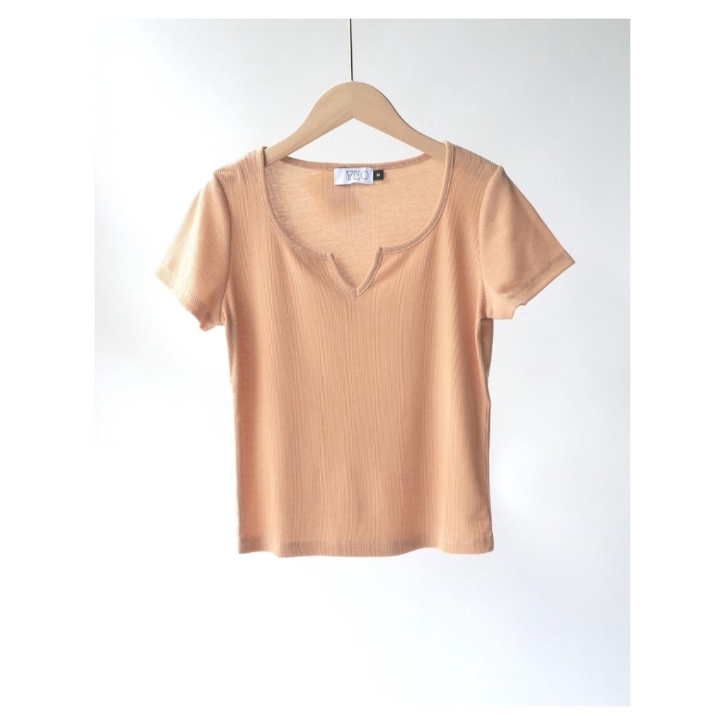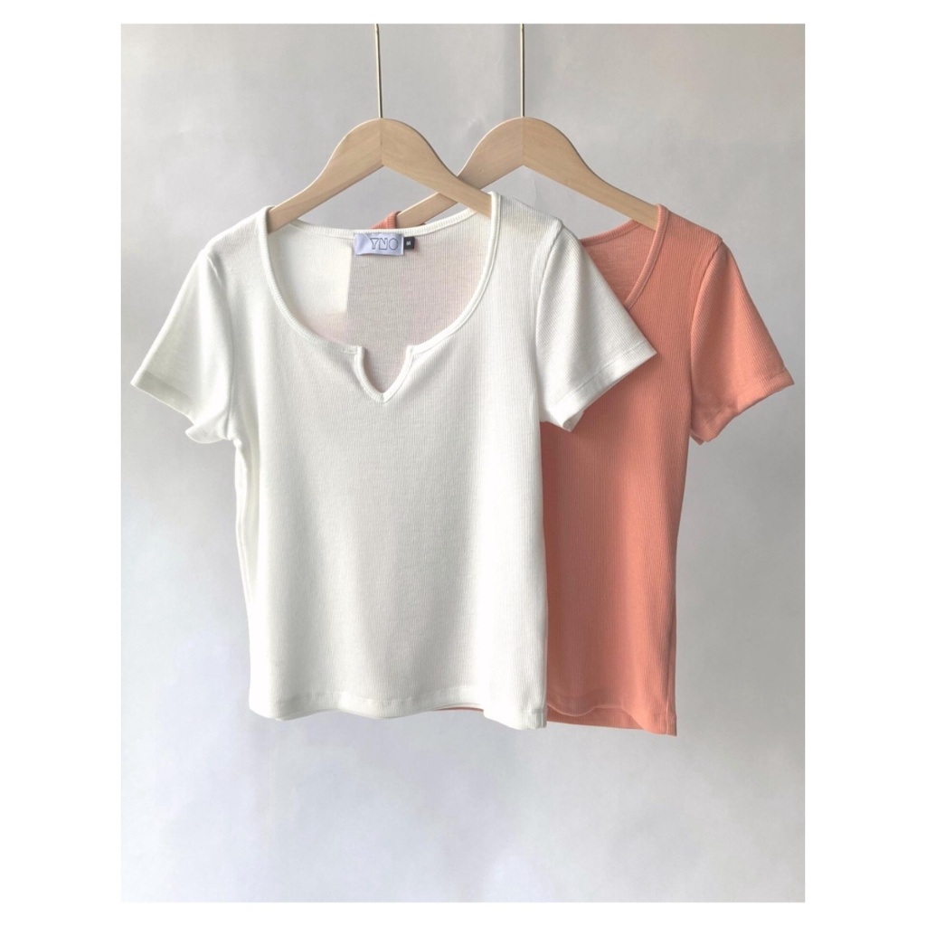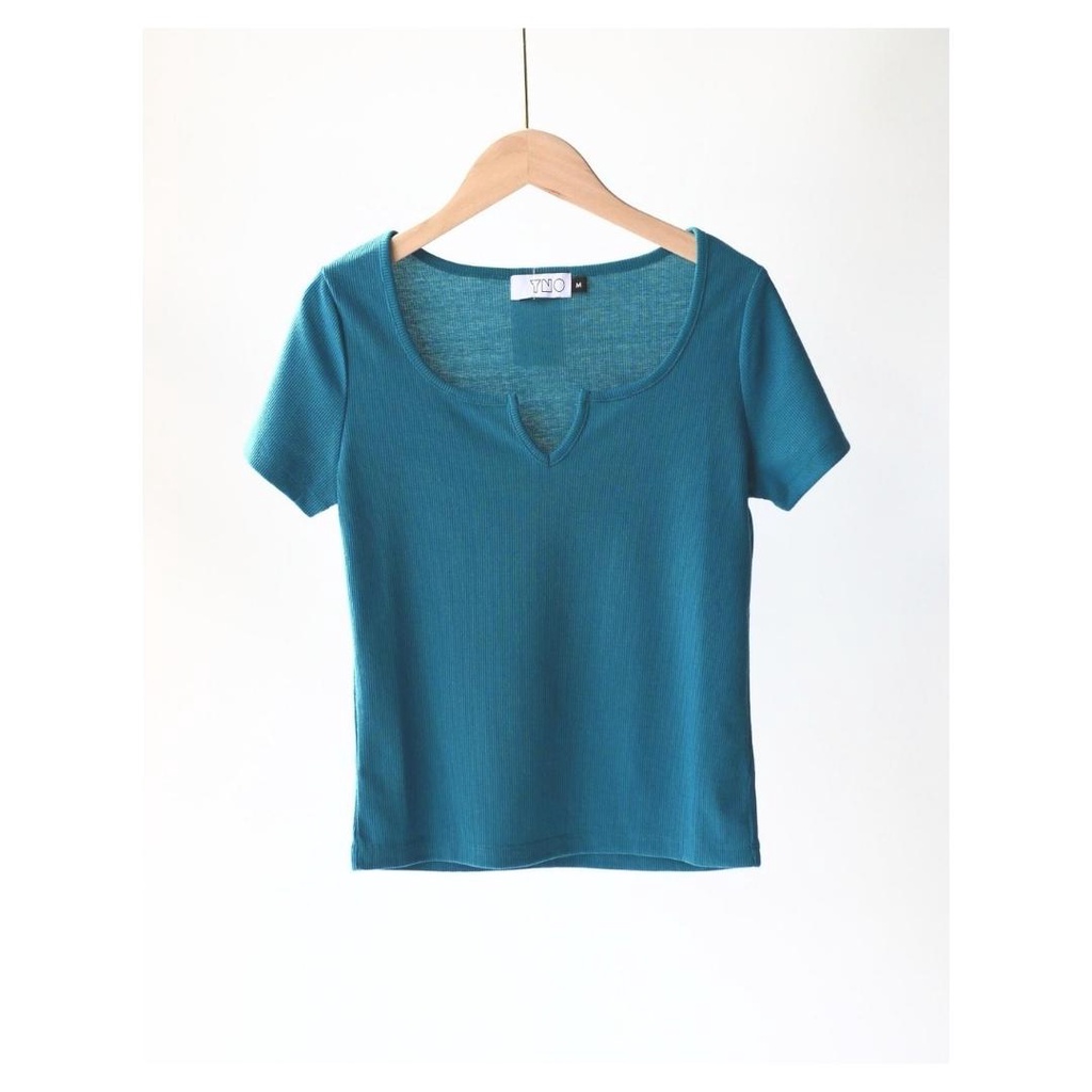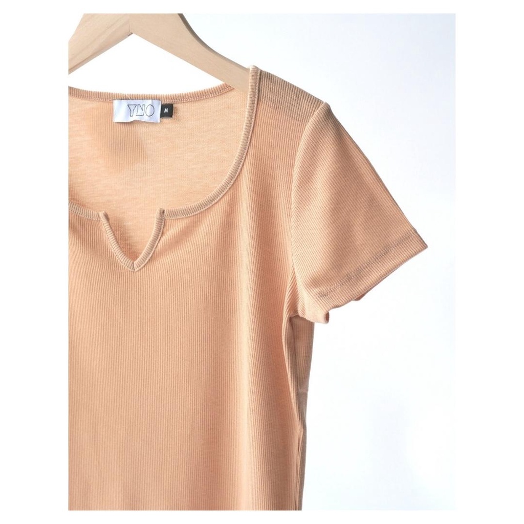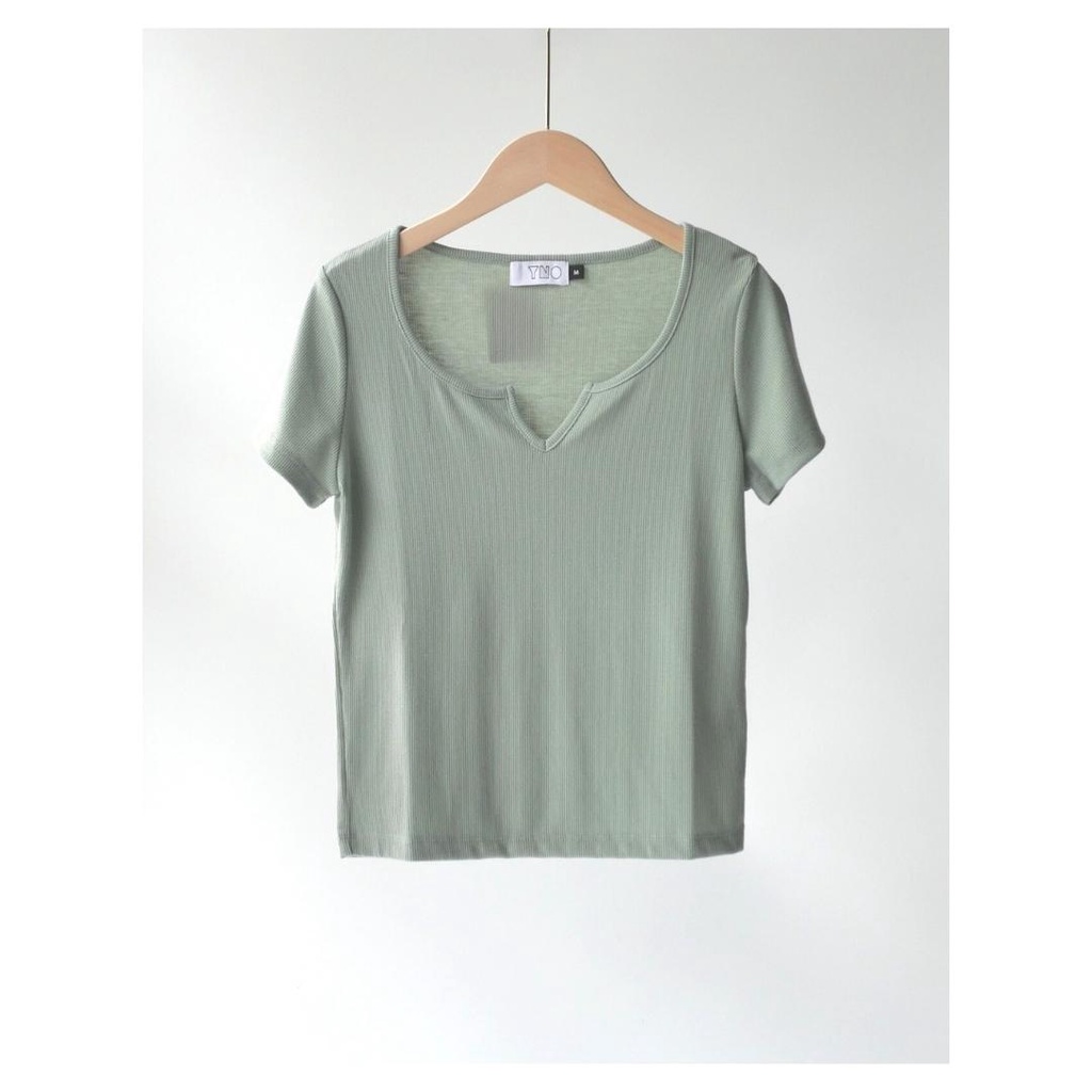 YNO V-neck ribbed t-shirt เสื้อยืดผ้าร่องริบคอวี 21110