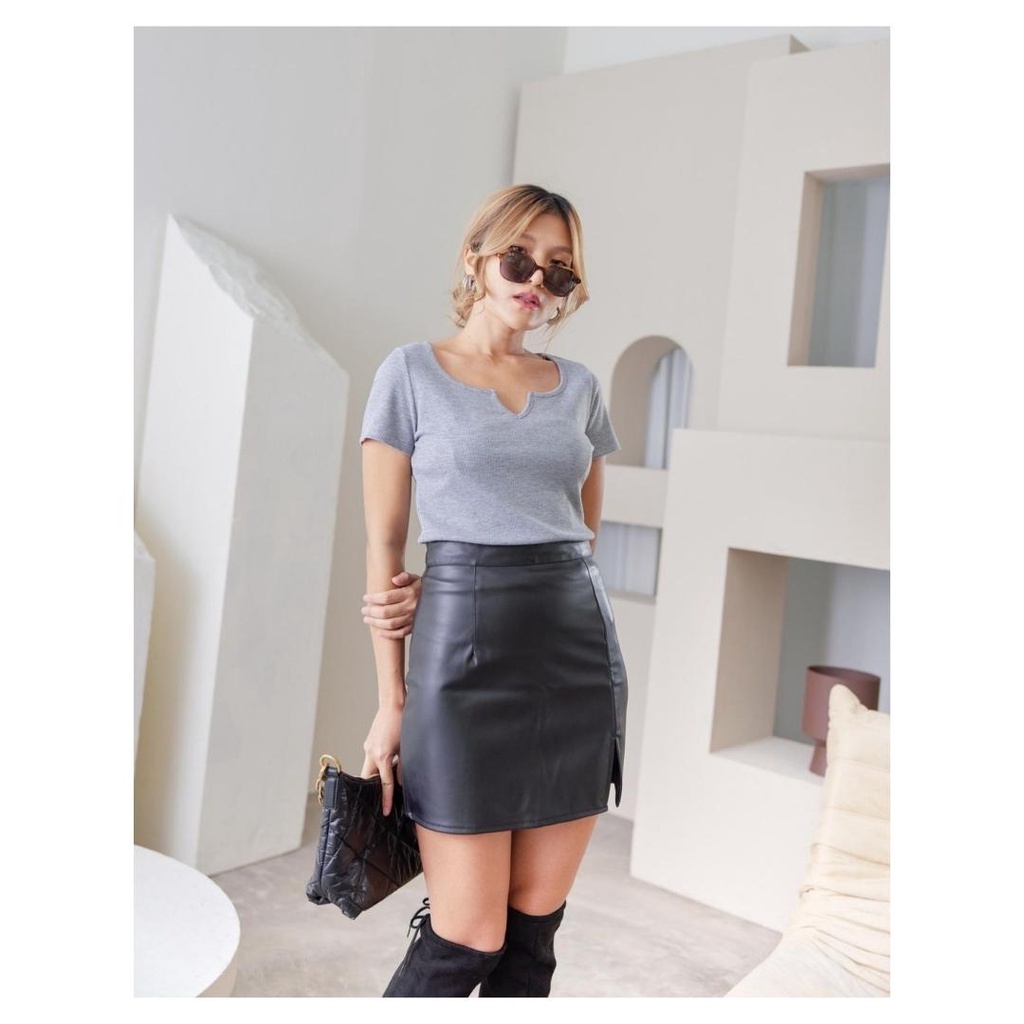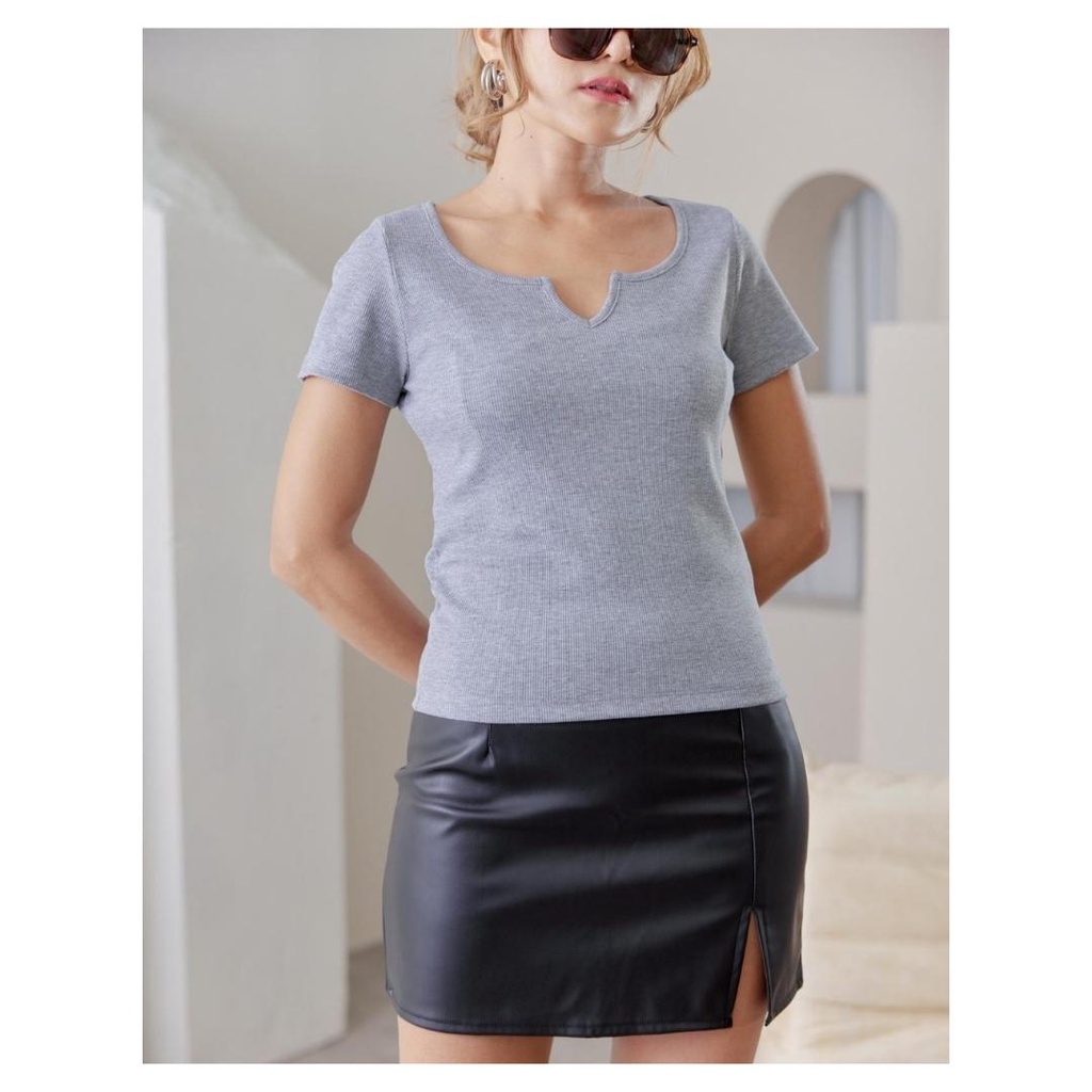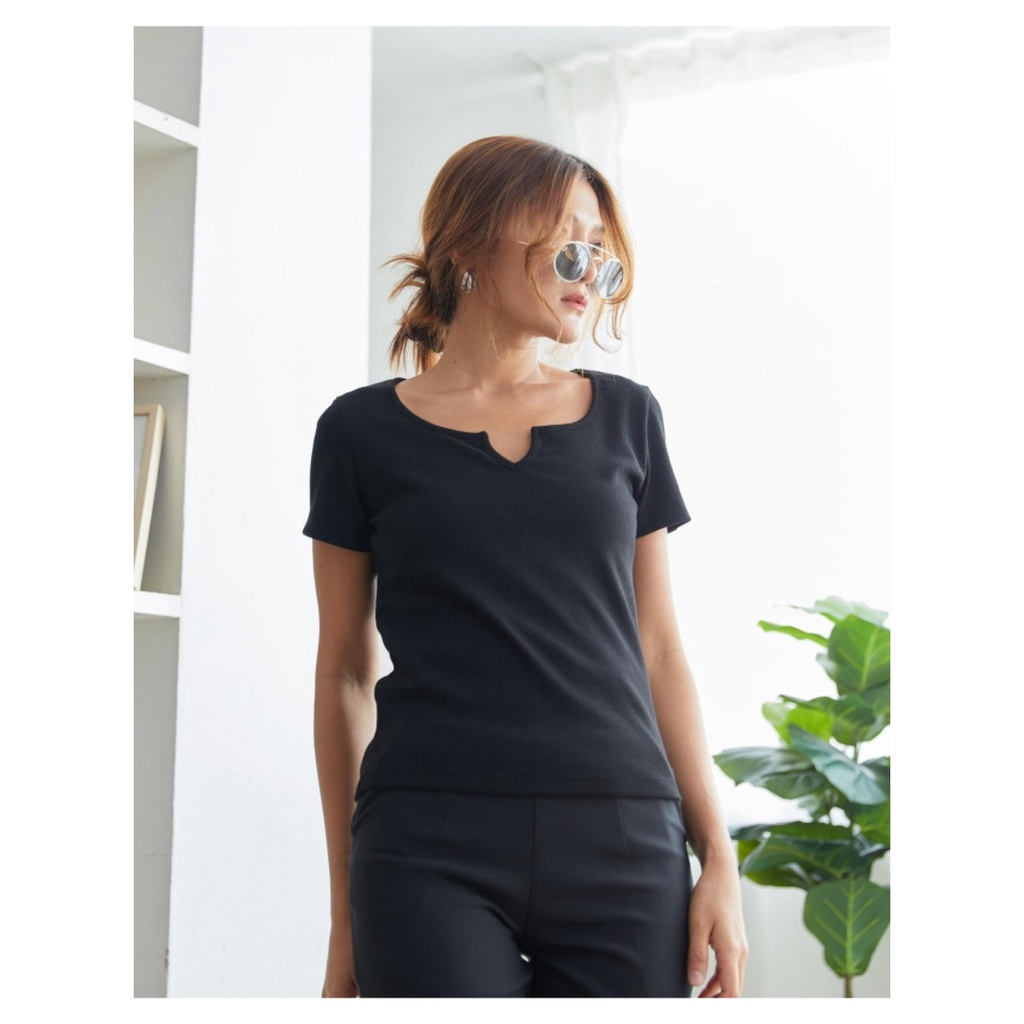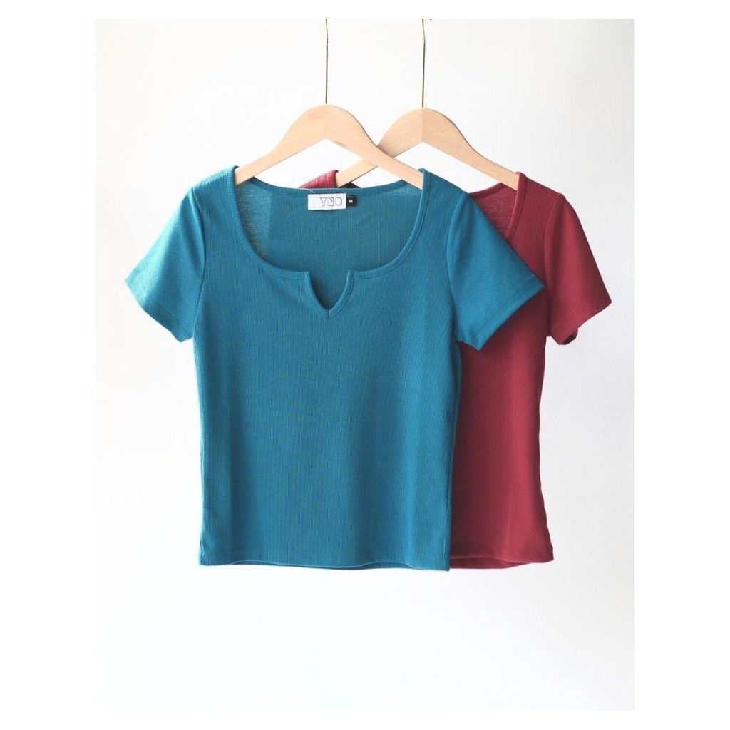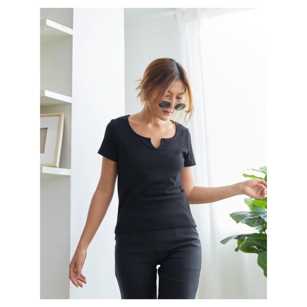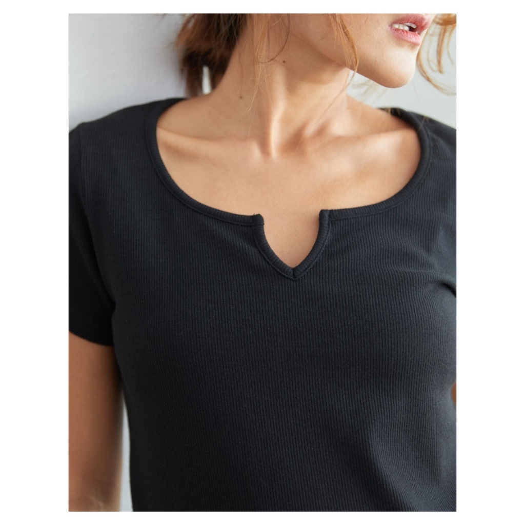 YNO V-neck ribbed t-shirt เสื้อยืดผ้าร่องริบคอวี 21110