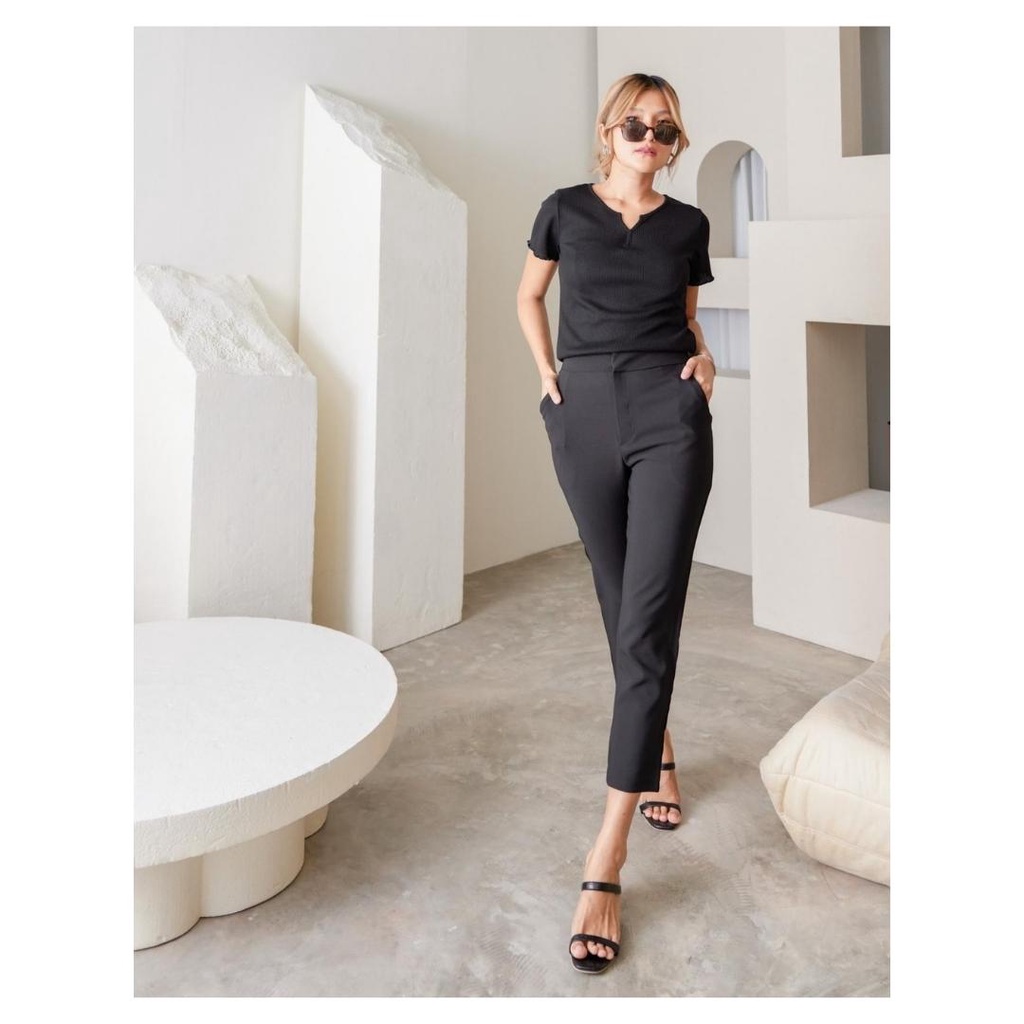 YNO Skinny cropped trousers กางเกงขา 6 ส่วนตะขอหน้า ทรงพอดีตัว 27134