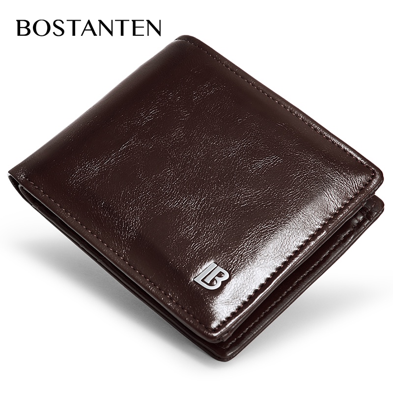 BOSTANTEN กระเป๋าสตางค์สั้นผู้ชายสามพับ, น้ำมันขี้ผึ้ง, กระเป๋าสตางค์หนังคลาสสิค, ความจุขนาดใหญ่, ลำลอง, ธุรกิจ, ทนทาน, คุณภาพสูง