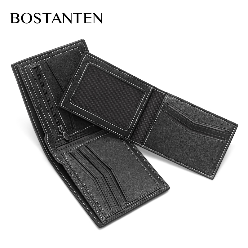 BOSTANTEN กระเป๋าสตางค์ใบสั้น หนัง PU สไตล์ธุรกิจ สำหรับผู้ชาย
