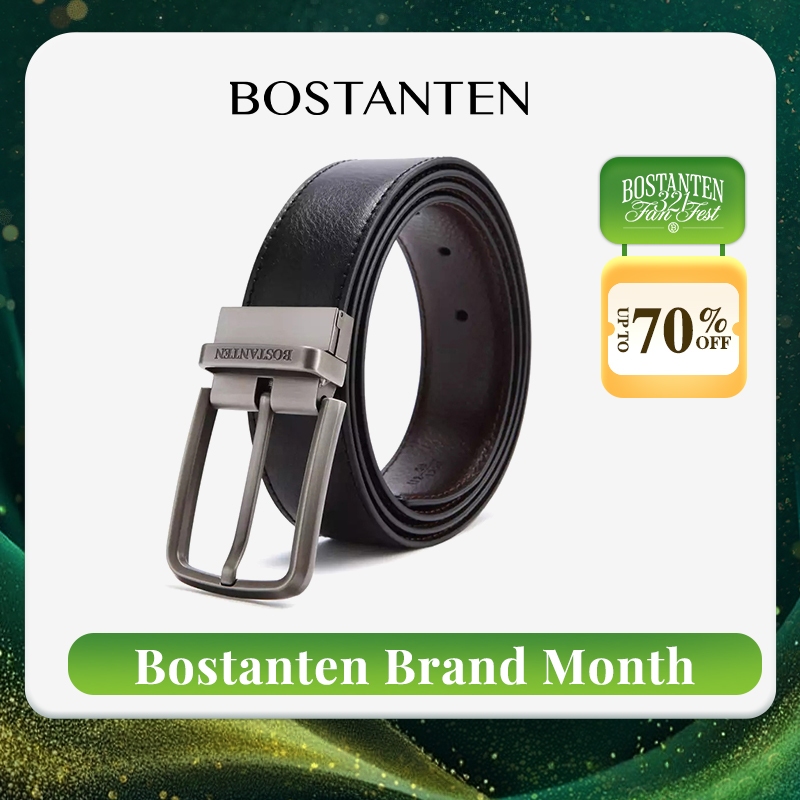 BOSTANTEN เข็มขัดผู้ชาย เข็มขัดหนังวัวแท้ ย้อนยุค ลำลอง ทนทาน ส ไตล์ธุรกิจ