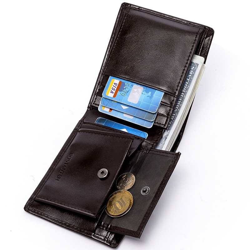 BOSTANTEN กระเป๋าสตางค์ผู้ชายใบสั้น ความจุมาก หนังทนทาน คลาสสิ ก กระเป๋าสตางค์ผู้ชายของแท้ ของขวัญผู้ชาย