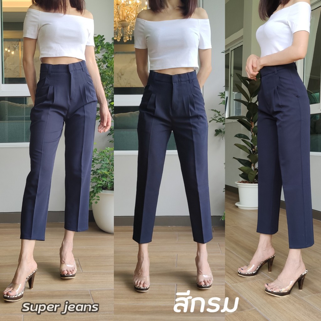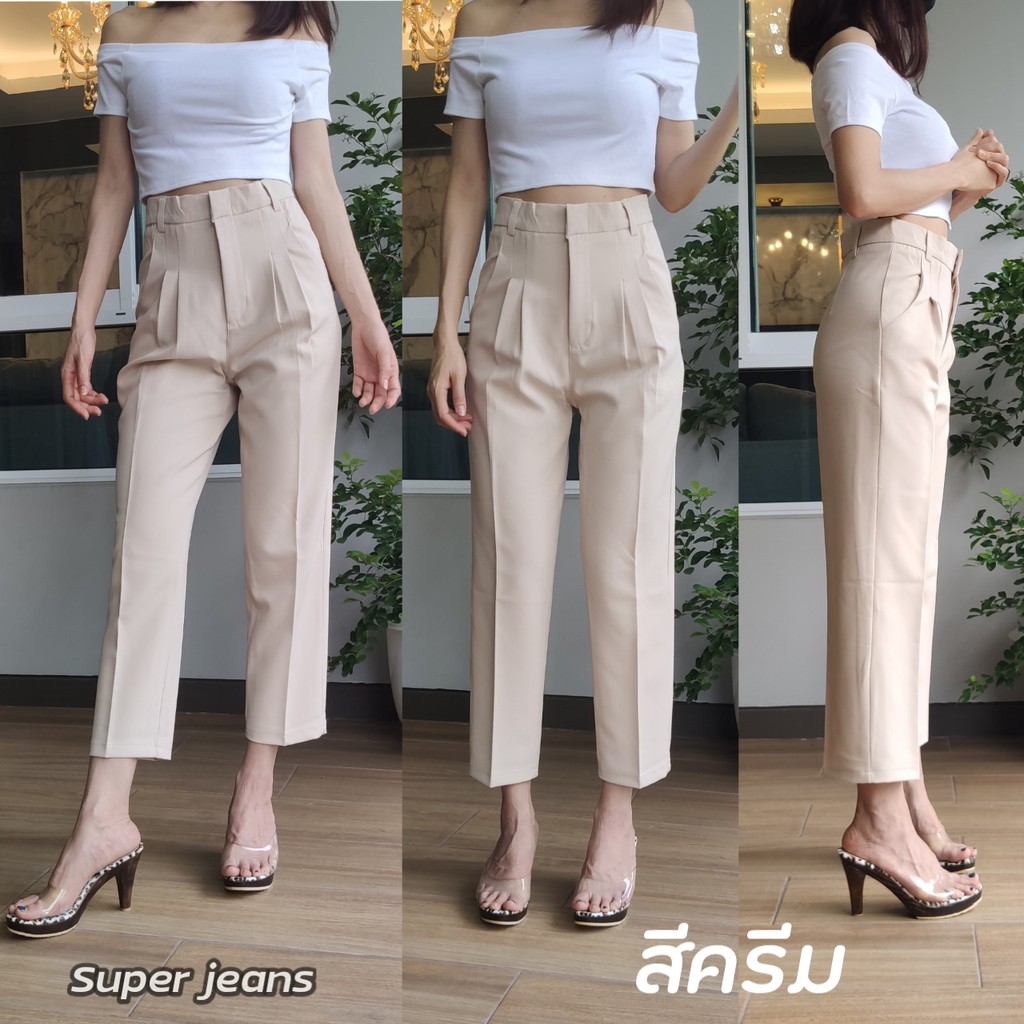 กางเกงทรงบอย8ส่วน แต่งจีบหน้า ใส่เท่ห์สุดชิลล์