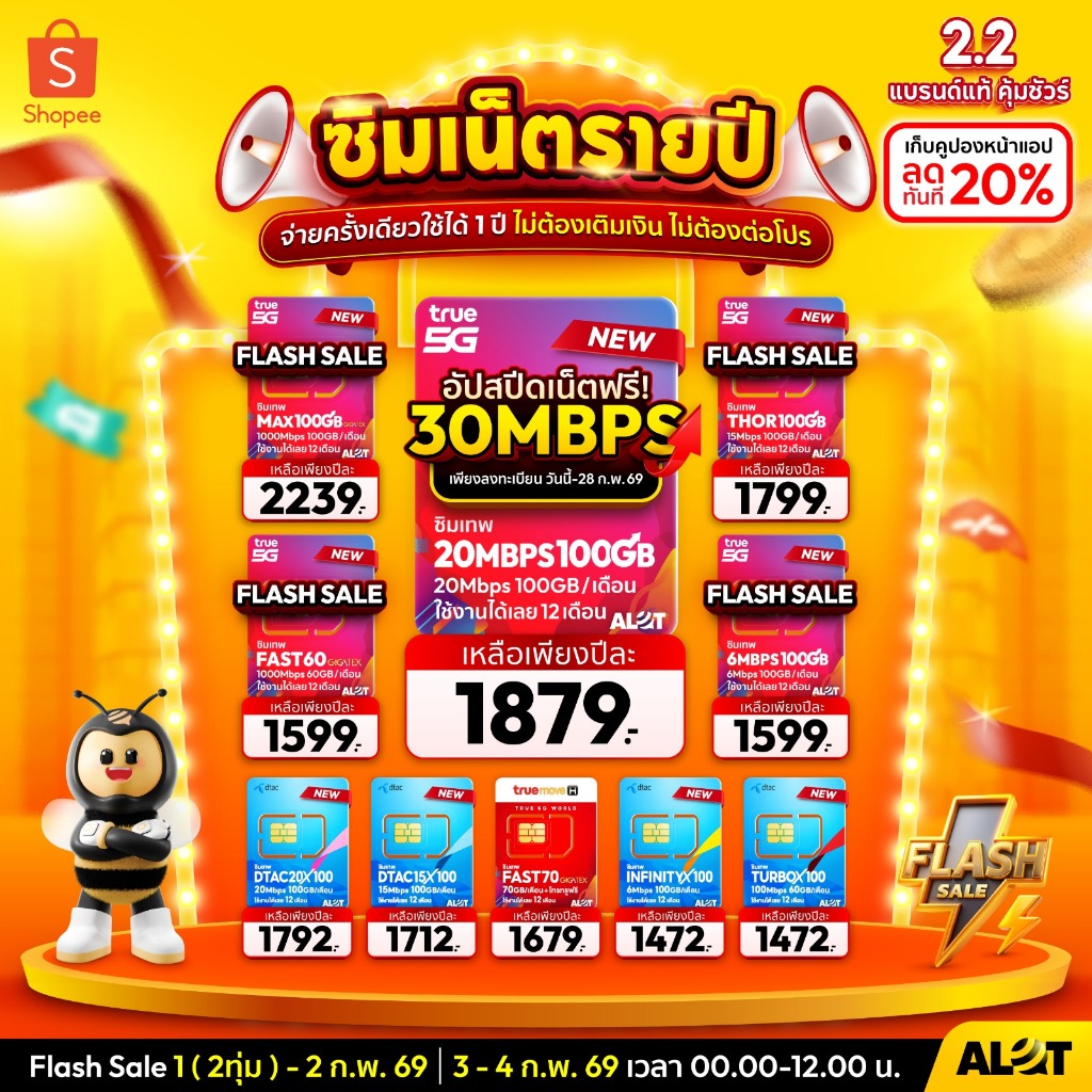 ส่งฟรี! ซิมเทพ เน็ตไม่อั้น ซิมทรู ดีแทค ซิมเน็ตรายปี sim ซิมเทพธอร์ ซิมเทพทรู 5G ออกใบกำกับภาษี AlotTech เก็บเงินปลายทาง