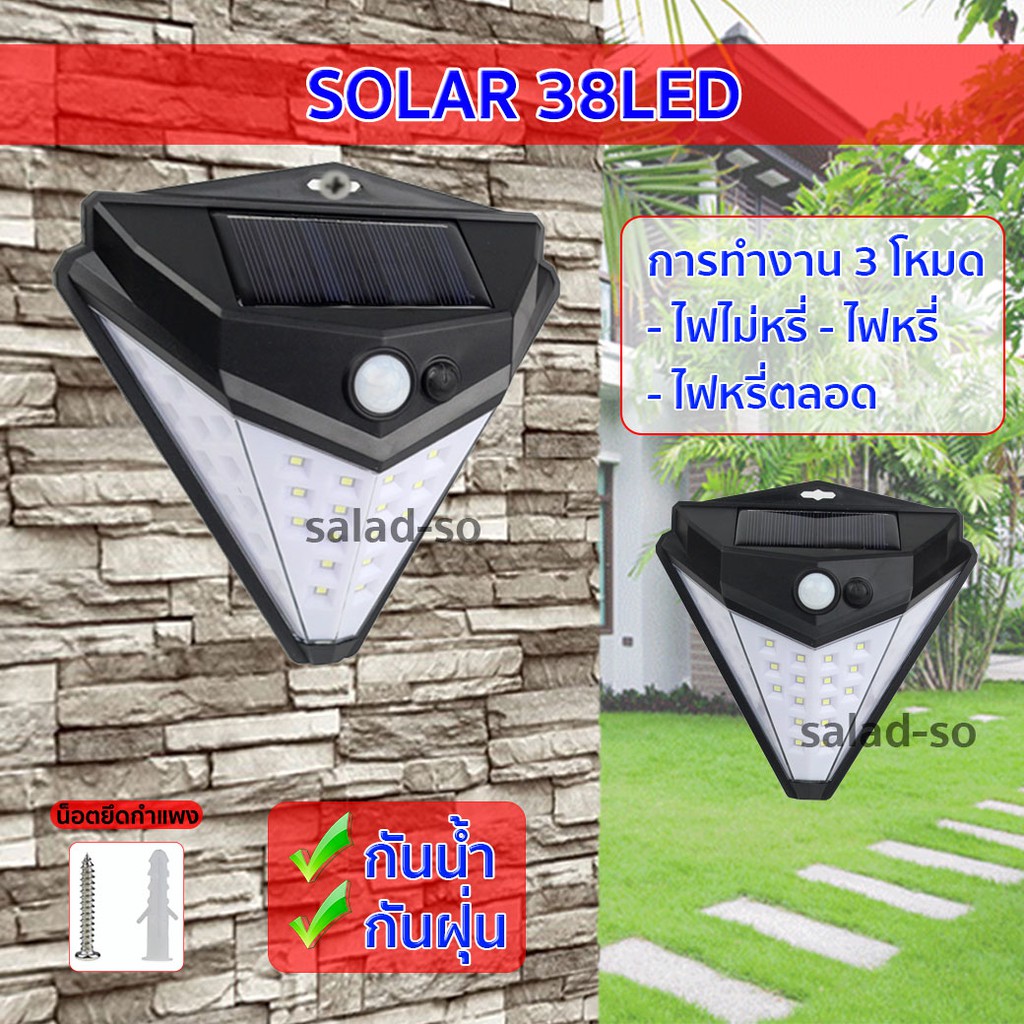 ไฟโซล่าเซลล์ solar LED ไฟติดผนัง ไฟเซ็นเซอร์ solar cell โซล่าเซลล์ solar light ไฟติดผนังโซล่าเซลล์ พลังงานแสงอาทิตย์