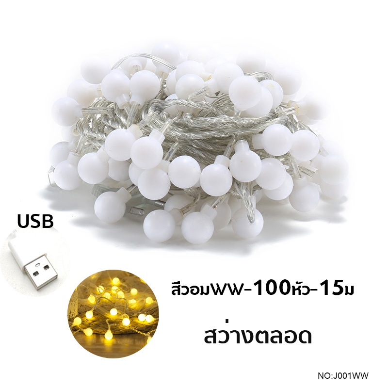 15 เมตร // ไฟแต่งห้อง ไฟตกแต่ง USB สำหรับตกแต่ง ไฟเชอร์รี่ LED 50หัว ไฟปีใหม่ YJR501