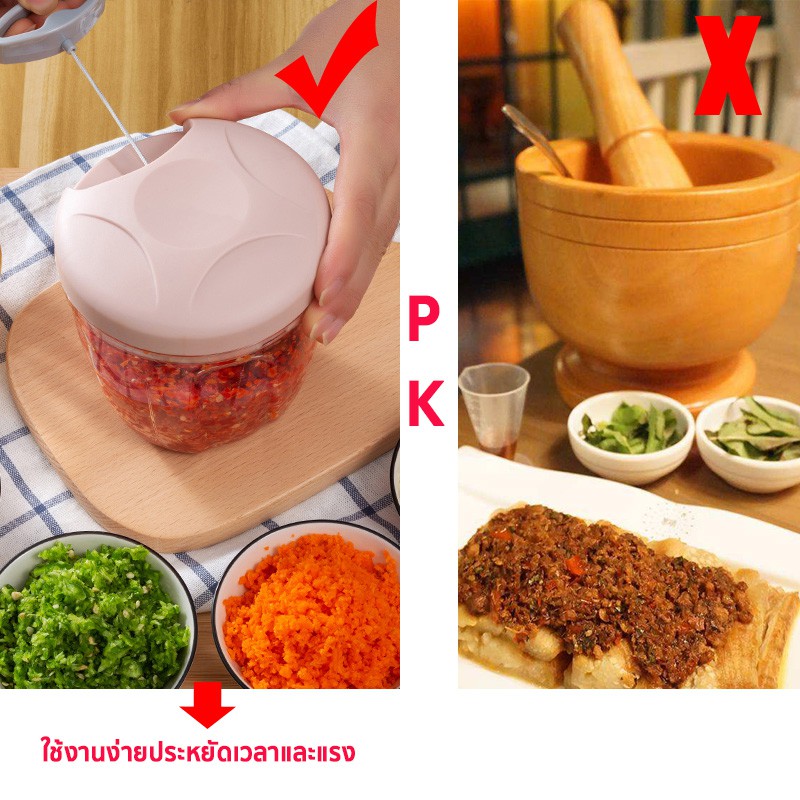 เครื่องบดกระเทียมมือดึง 500ML 900ML พกพาสะดวก รวดเร็ว ไม่ง้อไฟฟ้า พลาสติกทนทาน แข็งแรง มี2 ขนาด มีให้เลือก 3สี NO:Y080